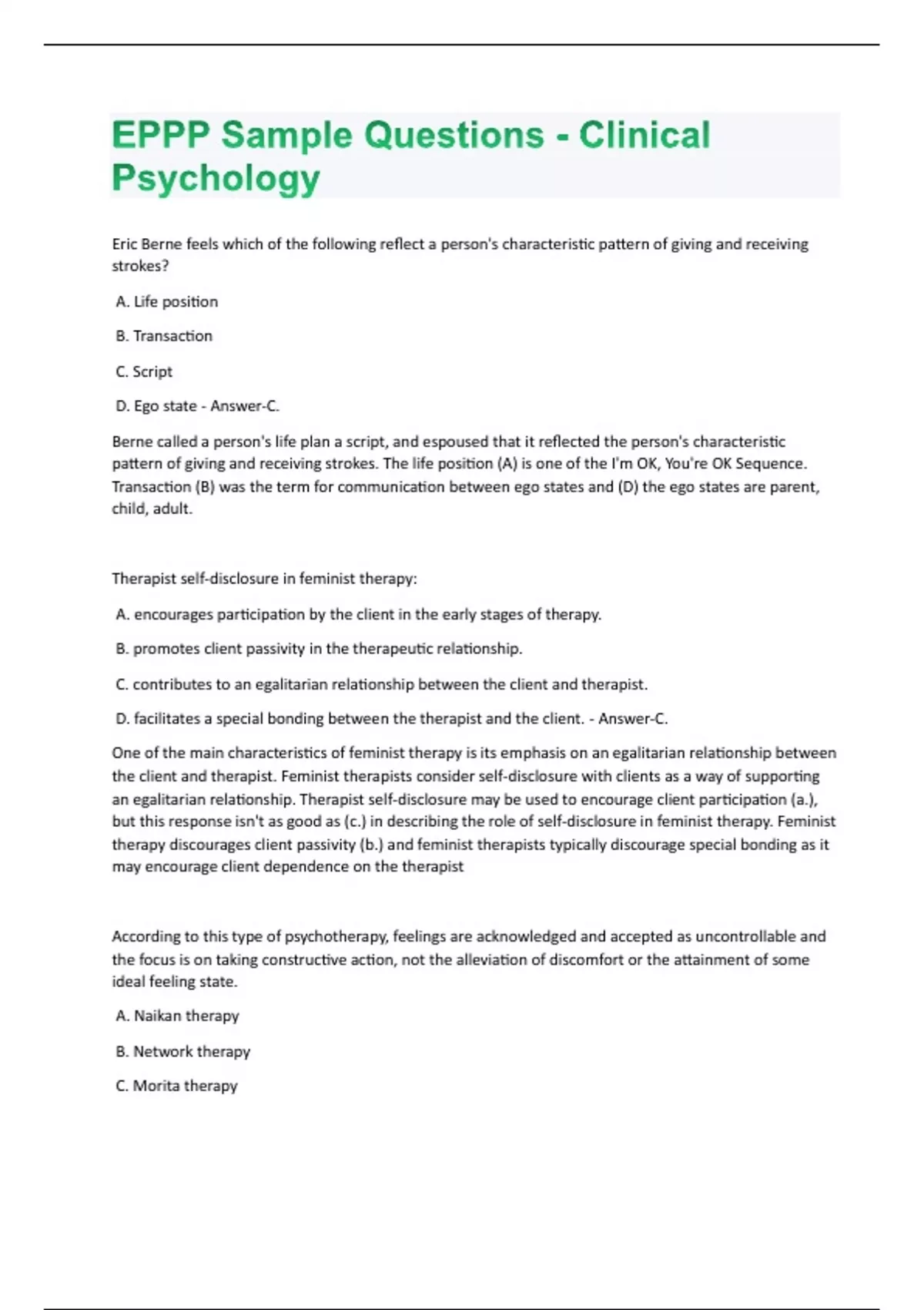 EPPP Clinical Psychology Questions Perfectly Answered!!