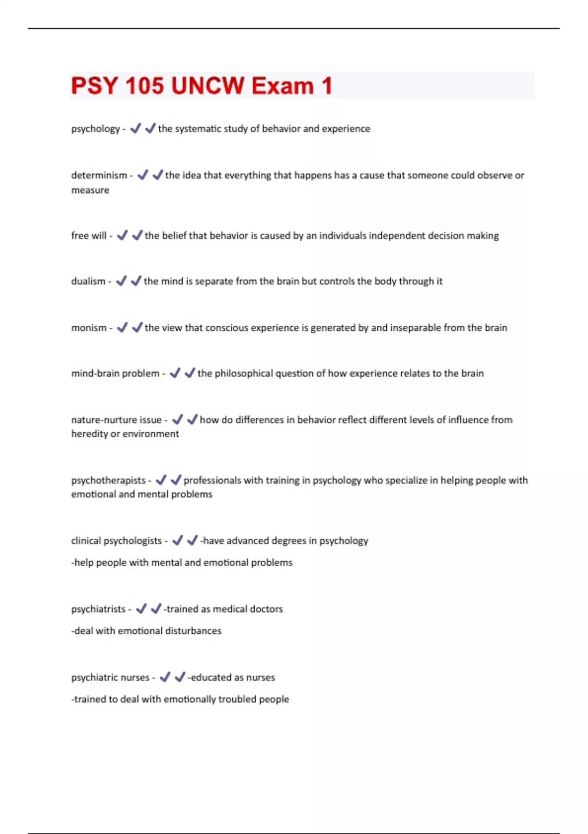 PSY 105 UNCW Exam 1 Questions Perfectly Answered!!