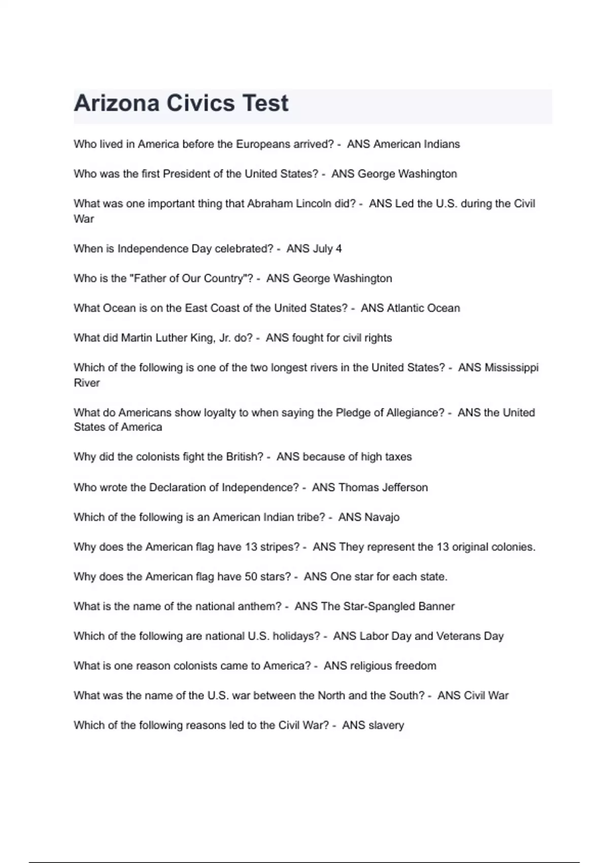 Arizona Civics Test Questions with Verified Solutions 2024( A+ GRADED 100% VERIFIED).
