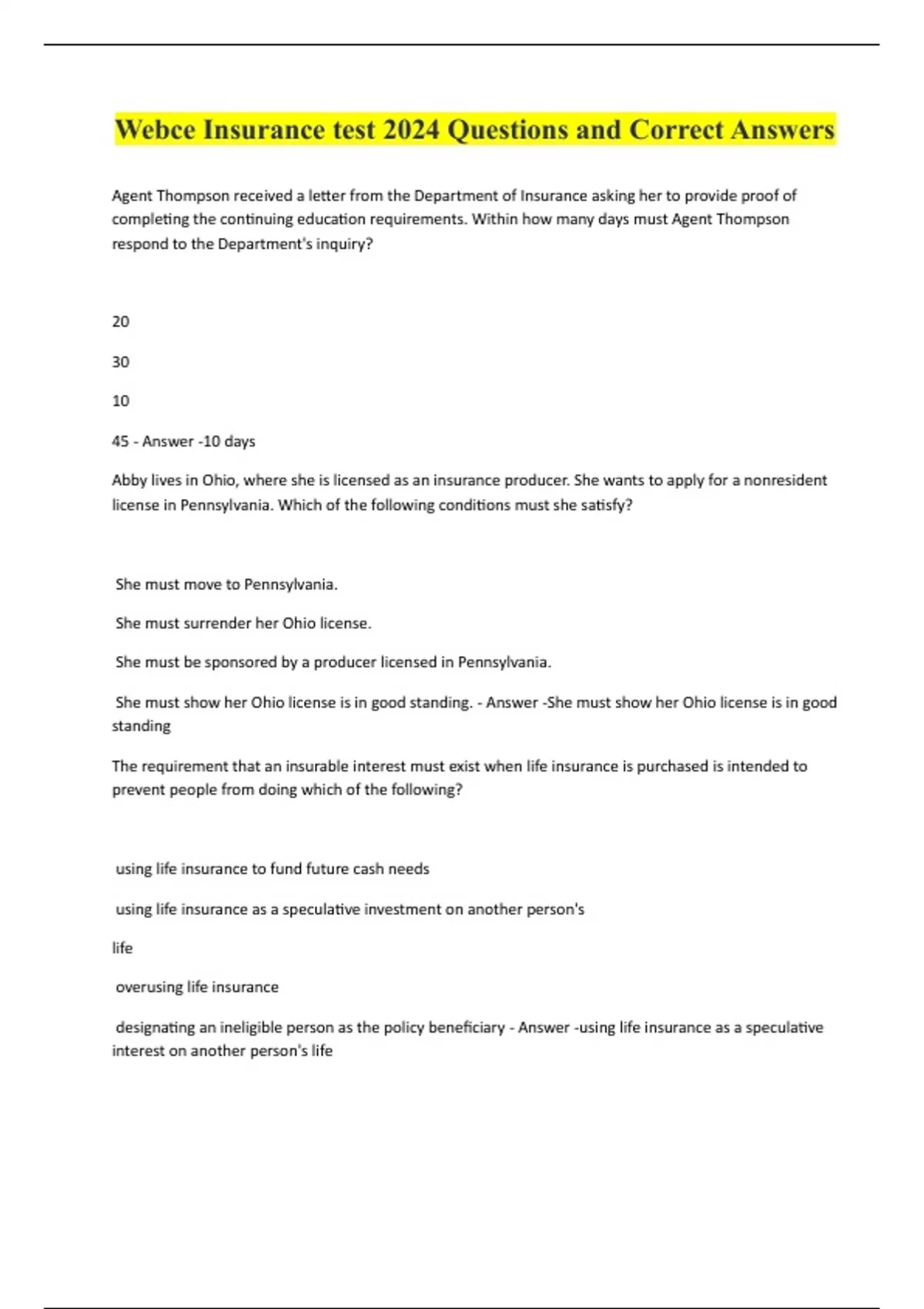 Bundle for WebCE with Correct Answers 2024 | 2025. Actual tests, Life and health, Practice exams, Commercial properties, property andwjec casuaty, LTC exams, Insurance regulations