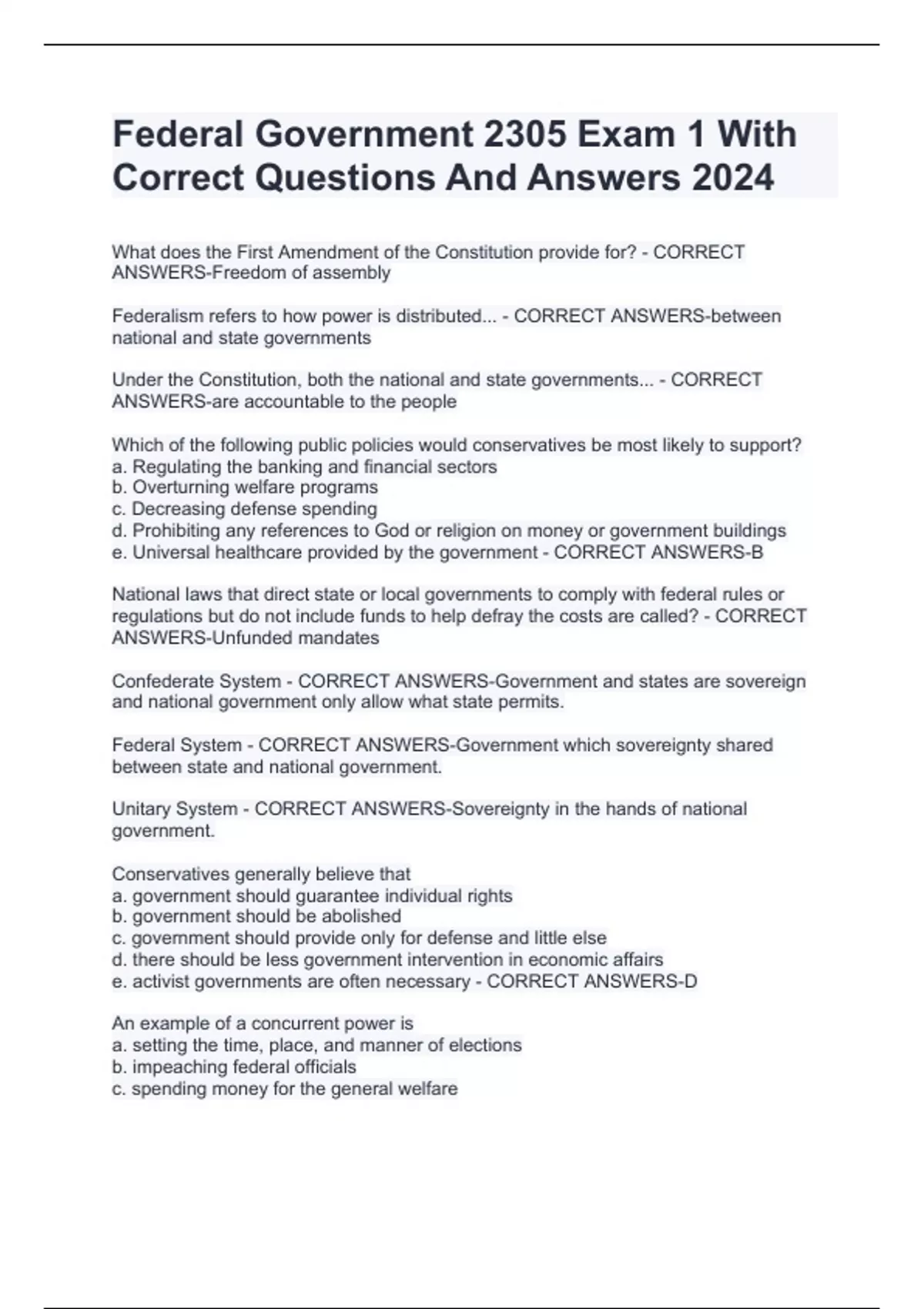 Federal Government 2305 Exam 1 With Correct Questions And Answers 2024 Government 2305 Final Exam With Correct Questions And Answers 2024 GOVT 2305 Exam I II III With Correct Questions And Answers 2024 Government 2305 Exam 1 Review With Correct Questions And Answers 2024 GOVT 2305 Exam With CGovernment 2305 Exam 1 orrect Questions And Answers 2024