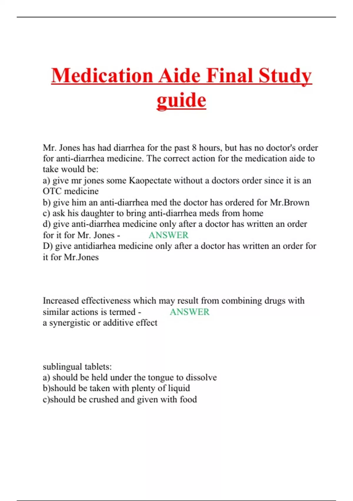 1 Exam (elaborations) Medication Aide Final Study Guide 2 Exam (elaborations) Medication Aide TEST 3 Exam (elaborations) med aid 2023/24 4 Exam (elaborations) Medication aide STATE FINAL 5 Exam (elaborations) Medication Aide Final Study guide