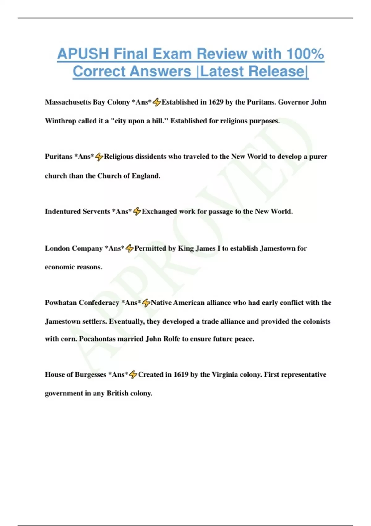 Complete Test Bank#2 : APUSH Full Exam Guide with 100% Correct Answers
