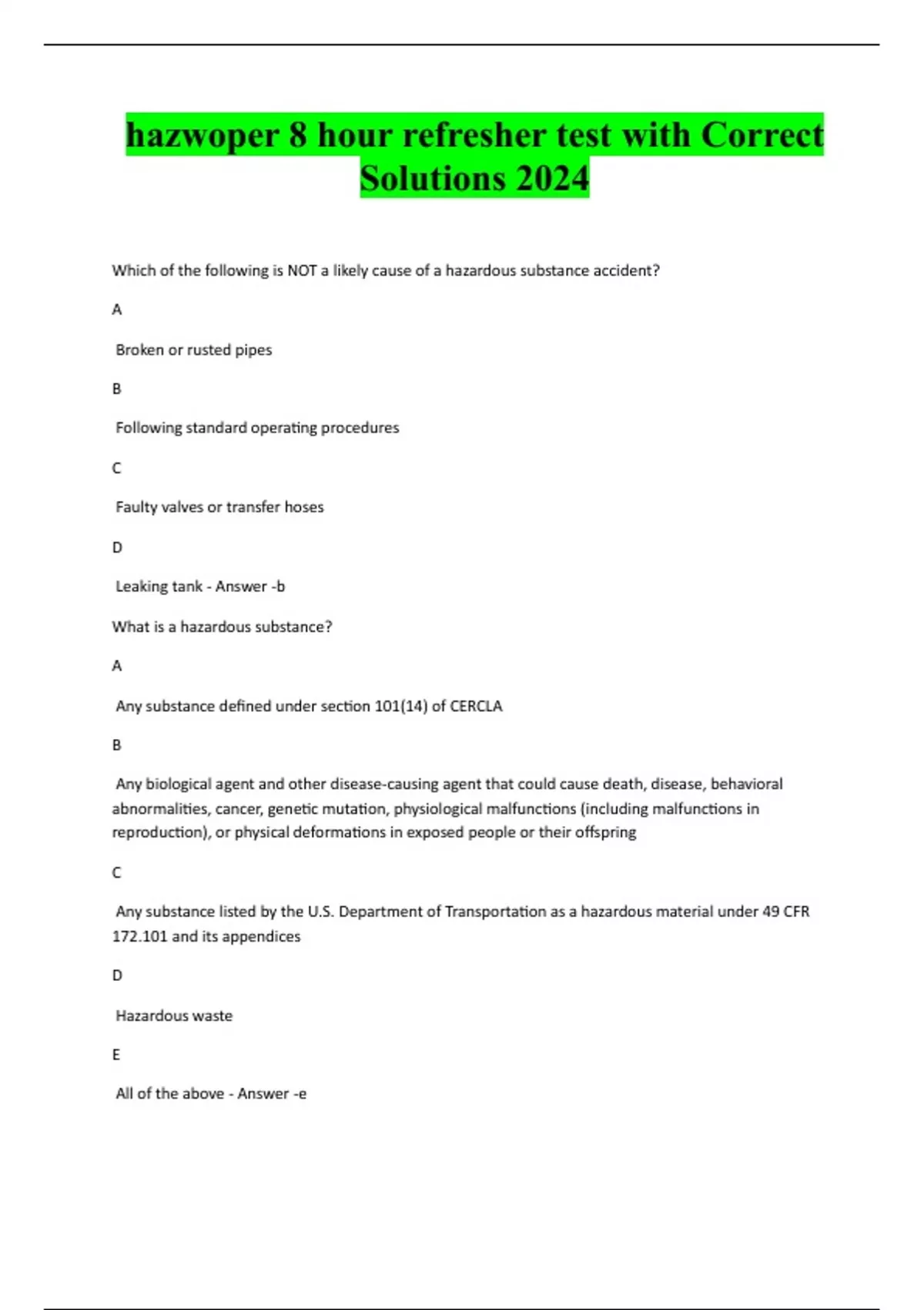 Package Deal for HAZWOPER with Correct Solutions 2024 | 2025. Actual exams, Hazwoper 40, module 1-10, 8hour refresher, module 41-50
