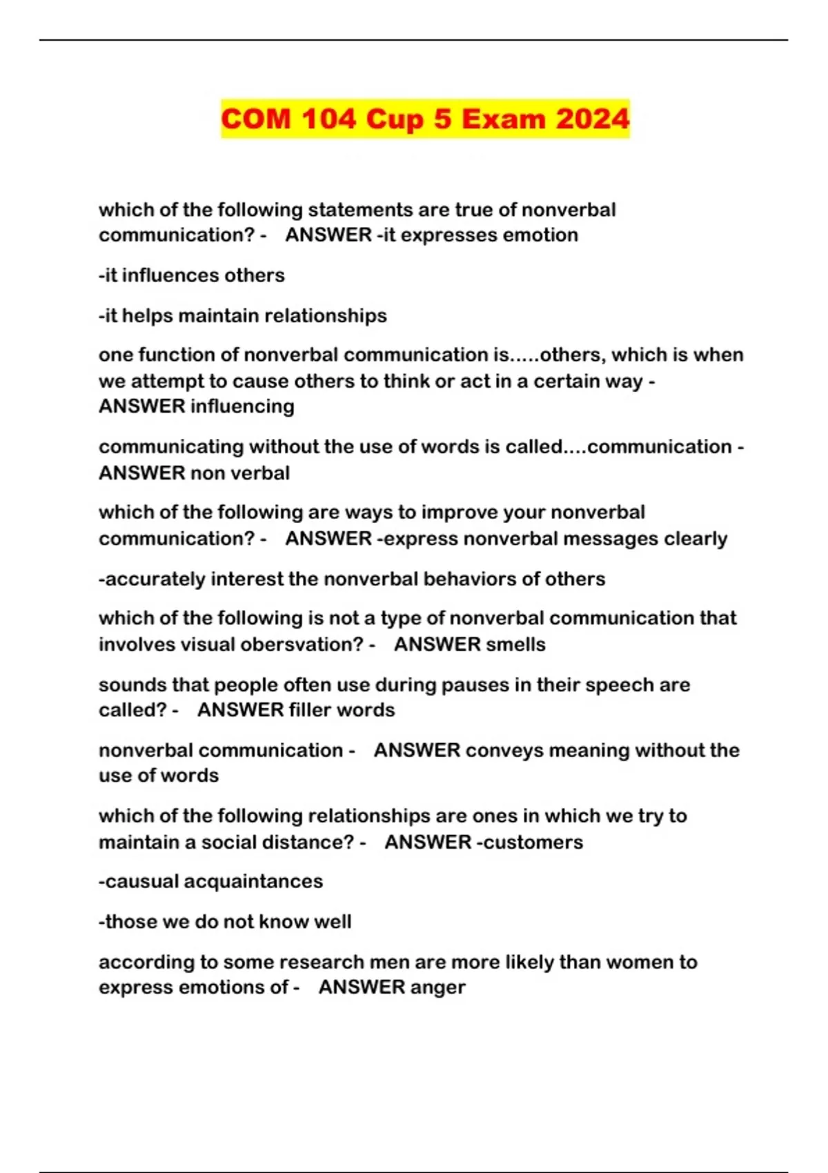 ALL COM 104/COM104 PACKAGED EXAMS 2024/2025...