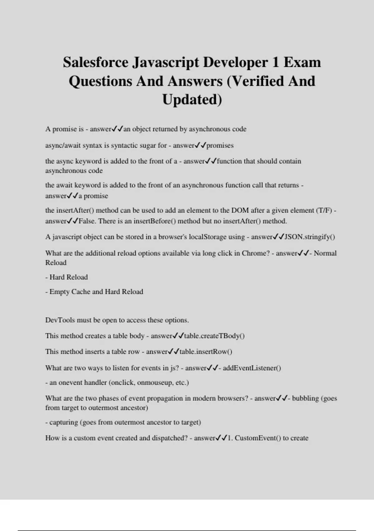 Salesforce JavaScript Developer Exam Bundle With Complete Solutions.