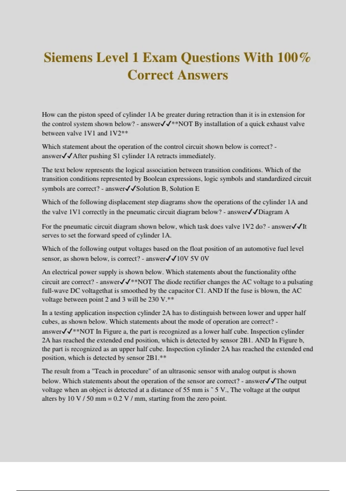 Siemens Level 1 Exam Questions With 100% Correct Answers