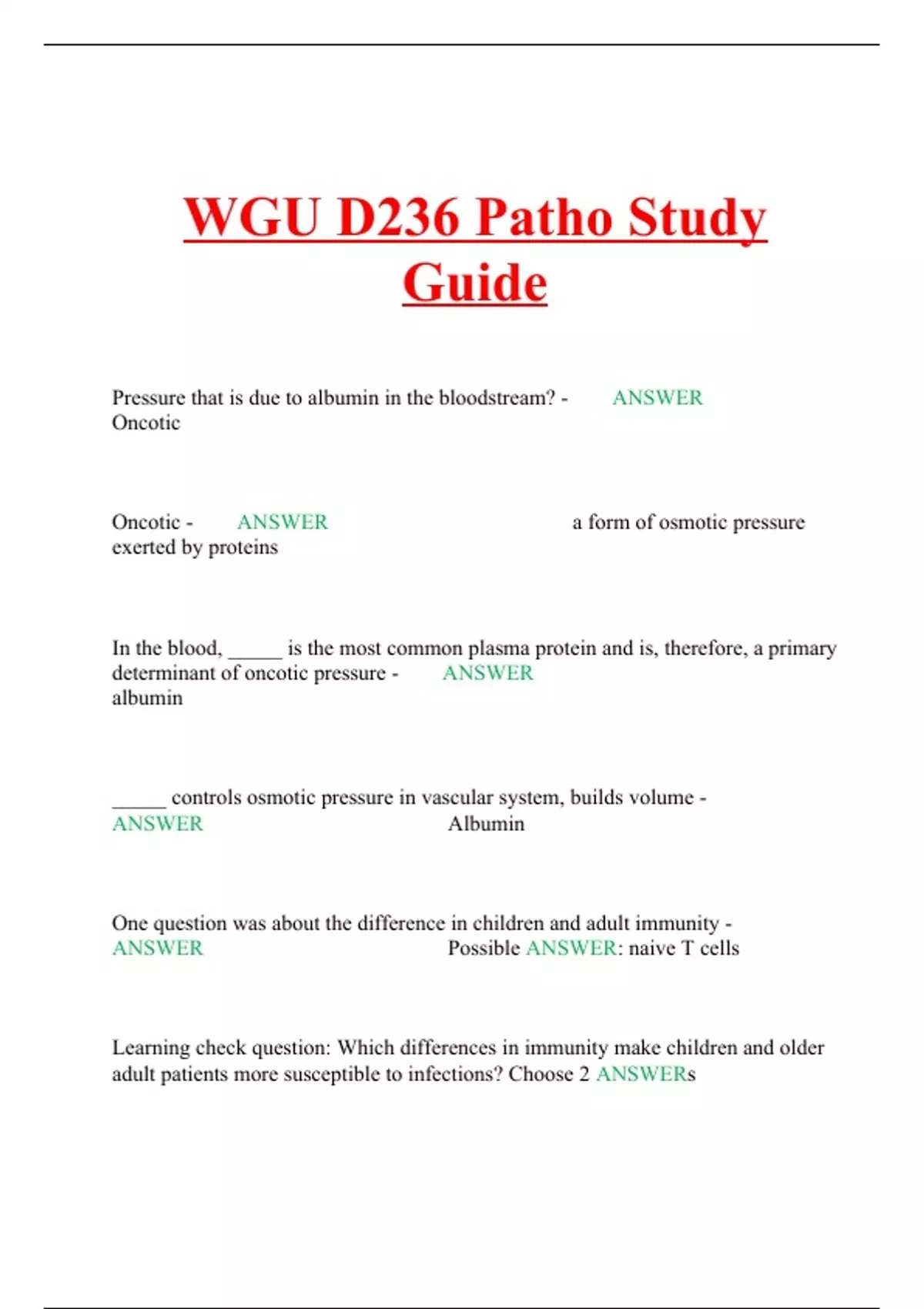 Exam (elaborations) WGU Pathophysiology D236 Exam (elaborations) WGU D236 Patho Study Guide