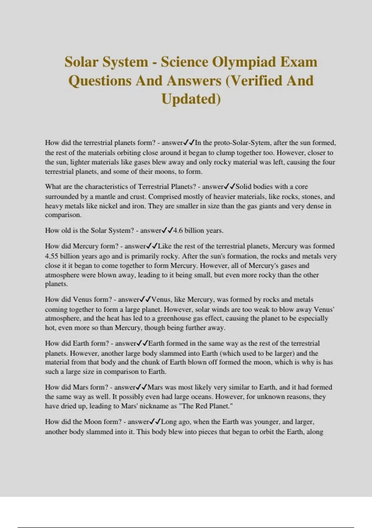 Solar System - Science Olympiad Exam Questions And Answers (Verified And Updated)