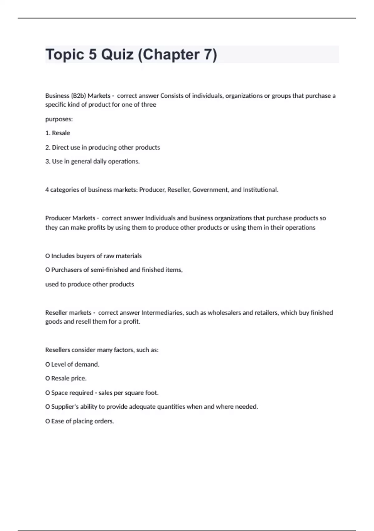 MKT-315 Ch. 7 Quiz questions and answers verifeid 2024