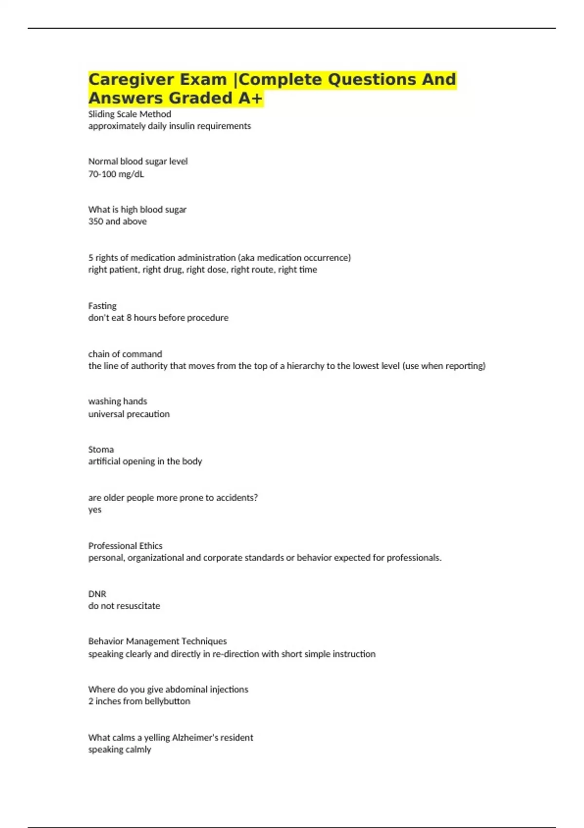 Caregiver study exam with complete answers. 2 Exam (elaborations) Caregiver Test Questions With Complete Answers 3 Exam (elaborations) Caregiver Test Questions With Complete Answers 4 Exam (elaborations) CAREGIVER EXAM |Complete Questions with A+ Graded Answers 5 Exam (elaborations) AZ Certified Caregiver Exam Practice|Complete With A+ Graded A