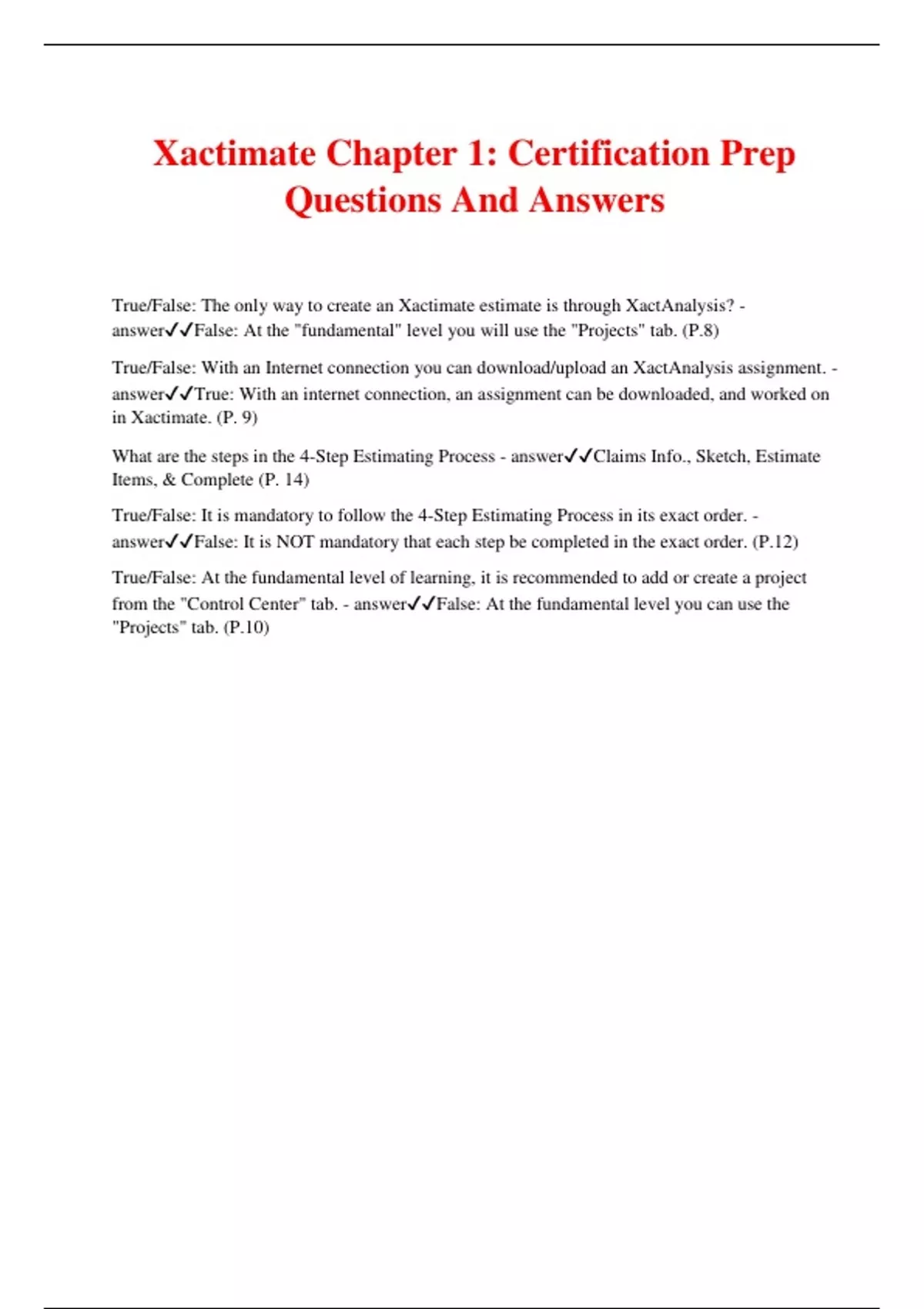 Xactimate Chapter 1: Certification Prep Questions And Answers