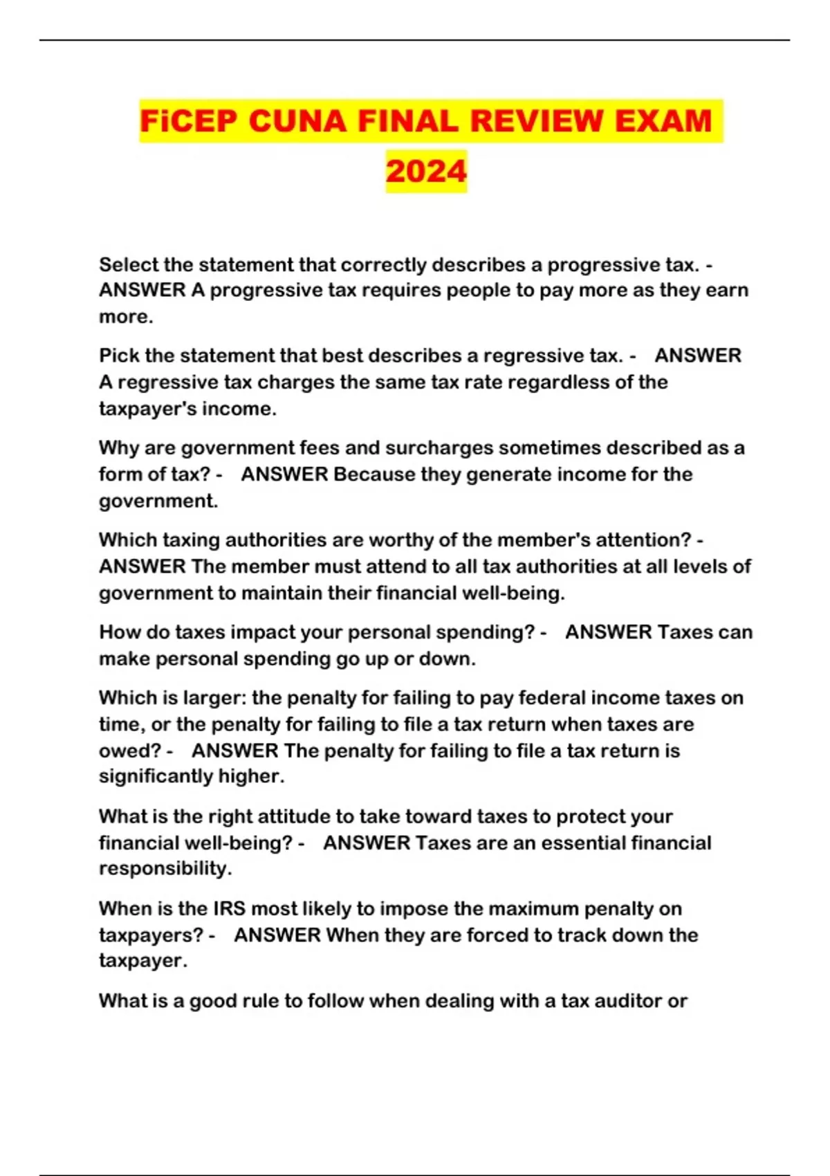 FiCEP CUNA FINAL REVIEW EXAM 2024