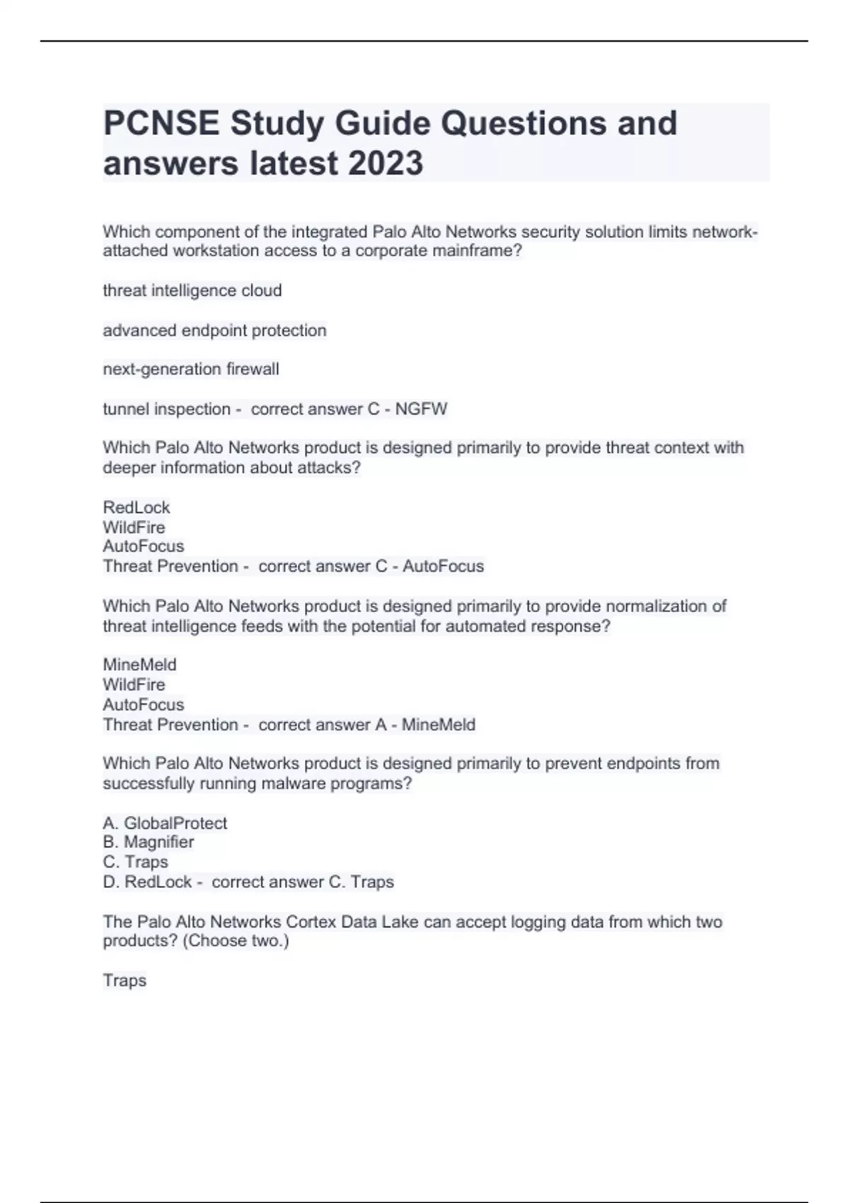 PACKAGE DEAL OF PCNSE QUESTION AND ANSWERS ALREADY PASSED