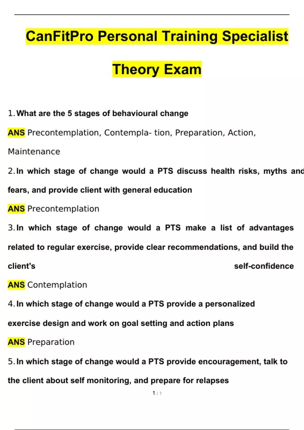 CanFit Pro BUNDLED CanFitPro Personal Training Specialist Theory Exam Can fit pro practical exam PTS Canfitpro Exam CanFit Pro Fitness Instructor Specialist Theory Exam Prep Questions with 100% Correct Answers | Updated & Verified