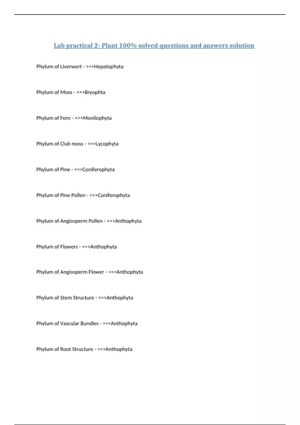 Lab Practical 2 Plants study guide complete solution update