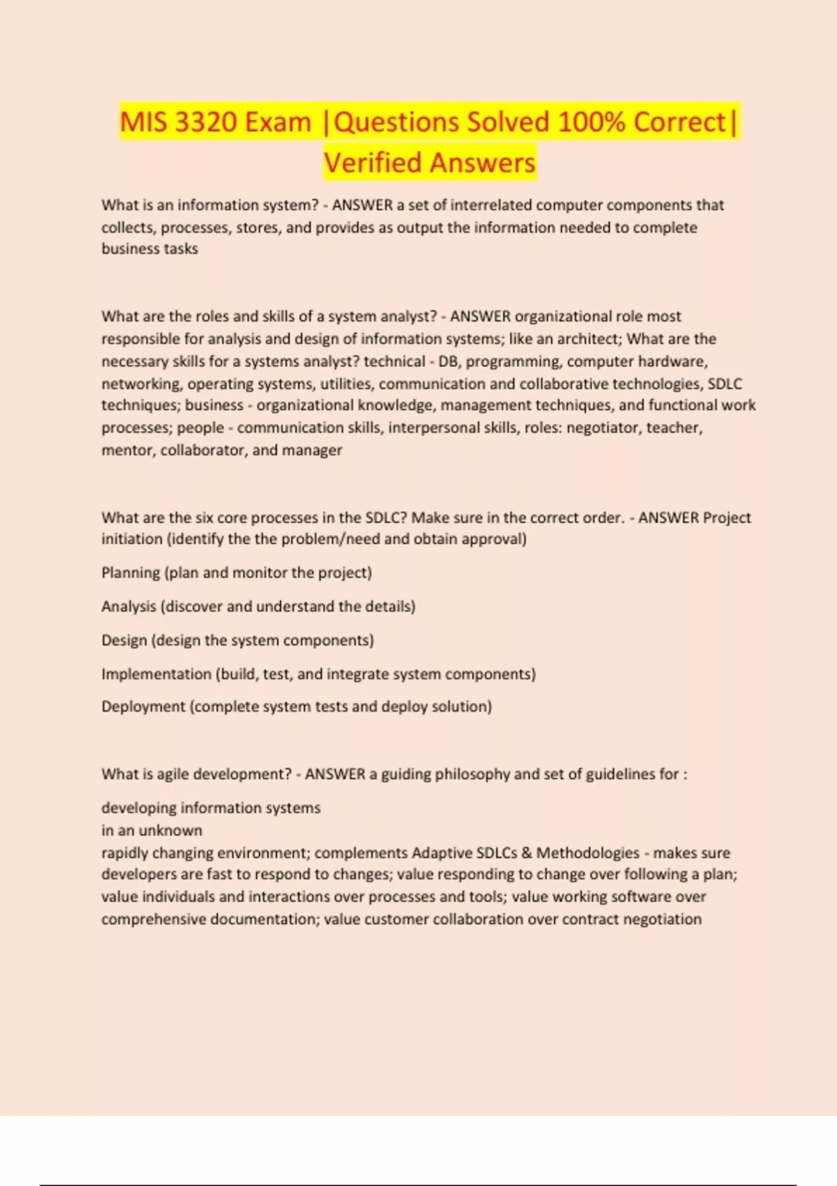 MIS 3320 Exam |Questions Solved 100% Correct| Verified Answers