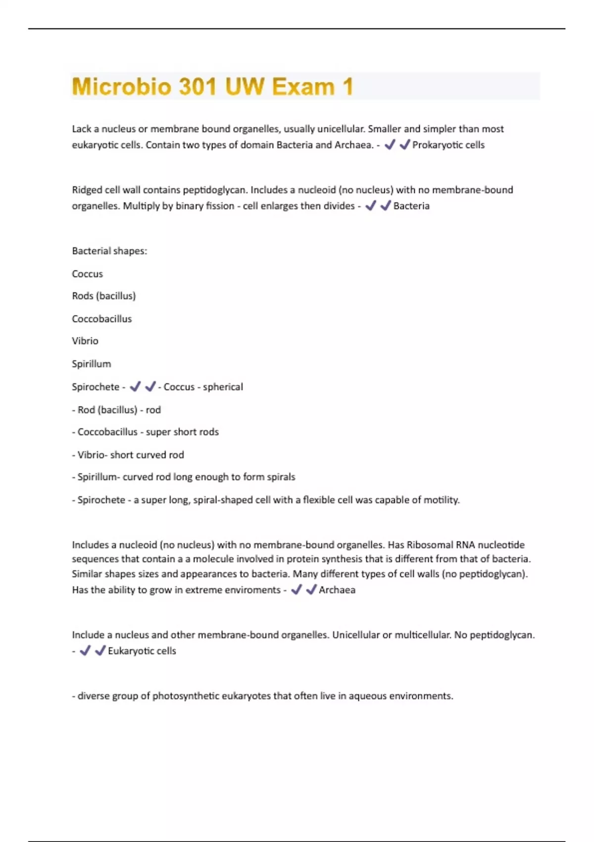 Microbio 301 UW Exam 1 Questions And Answers.
