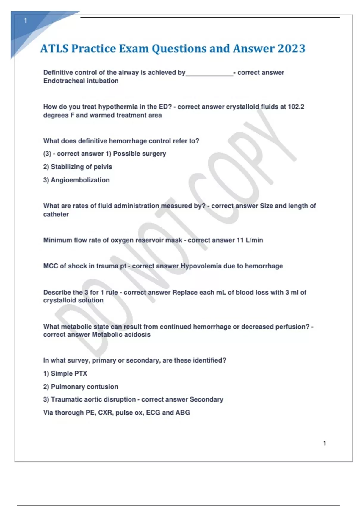 ATLS Post Test 4 Latest Versions with Verified Solutions 2024