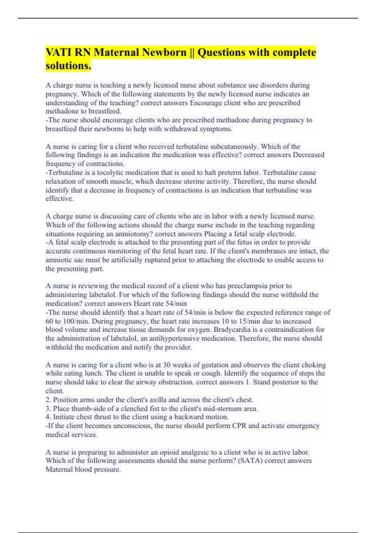 VATI RN Maternal Newborn Assessment || Guaranteed Pass!!! Maternal Newborn Exam One || With A+ verified solutions. ATI Capstone Maternal Newborn Pre-Assignment || Correctly Answered. NCLEX Maternal Newborn || With complete solutions. VIRTUAL ATI MATERNAL NEWBORN (100% Verified solutions)