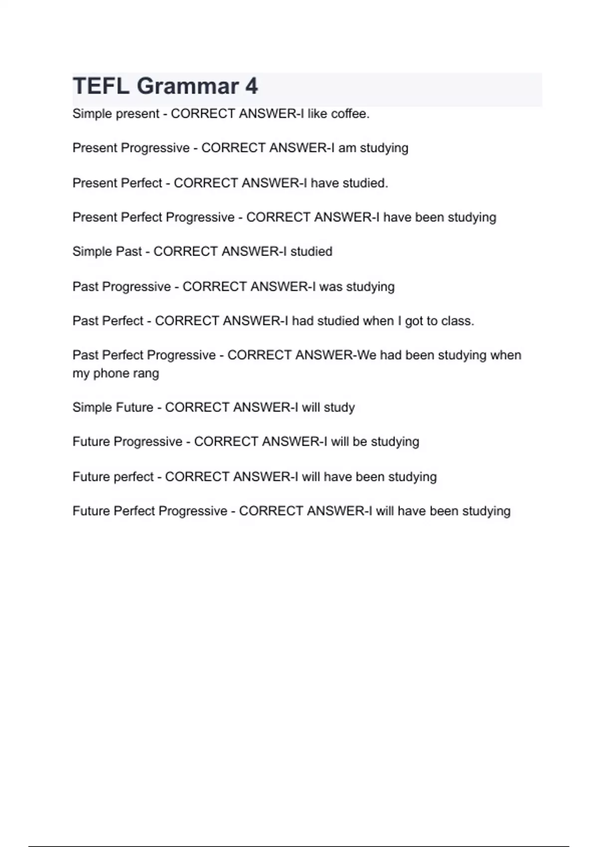 TEFL Grammar 4 with 100% Correct Answers