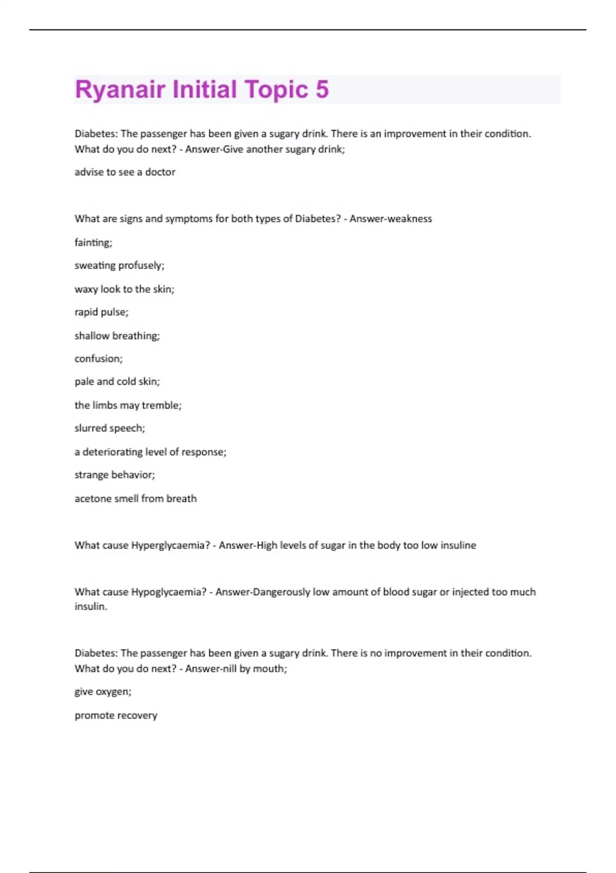 First Aid Ryanair Questions & Answers Already Graded A+