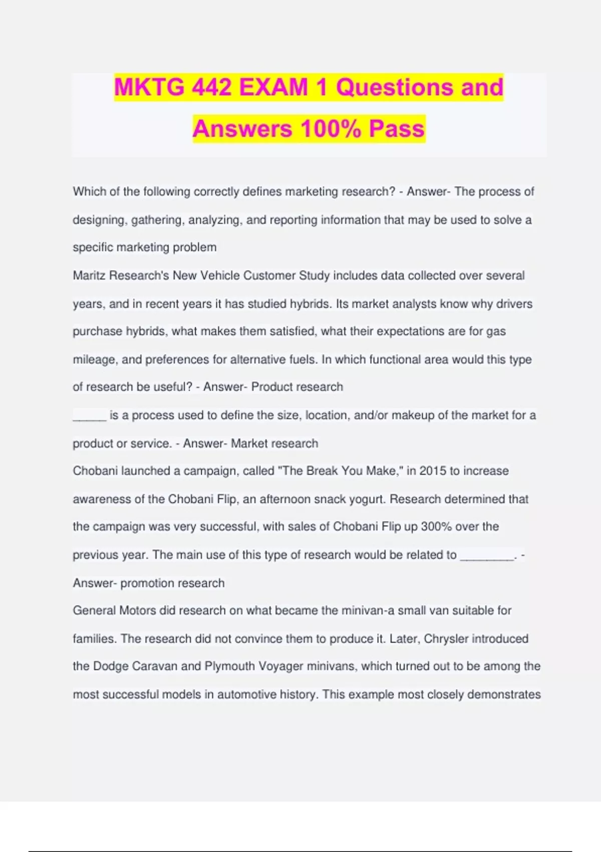 MKTG 442 Bundled Exams Questions and Answers 100% Verified and Updated | Graded A