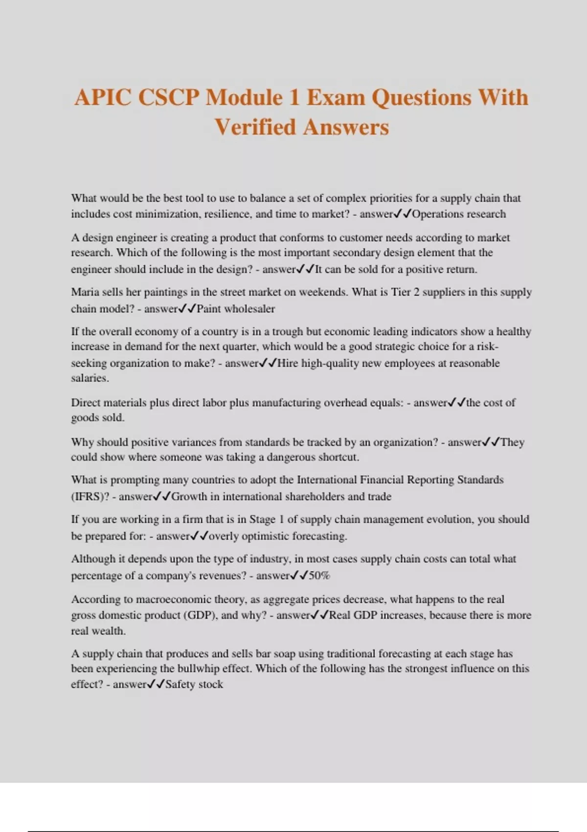 Package Deal For APICS CSCP Exam Questions With 100% Verified Answers.