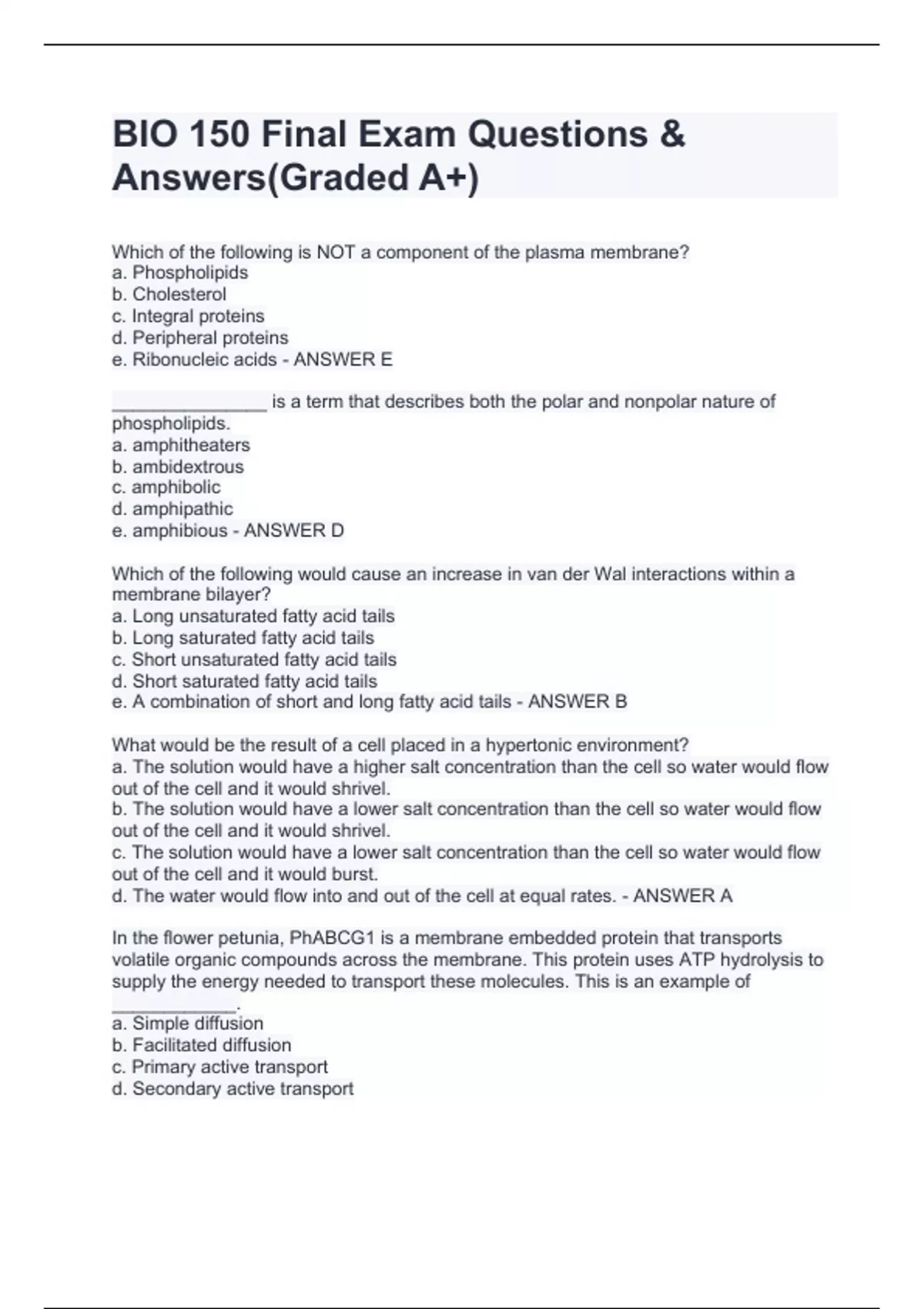 BIO 150 Final Exam Questions & Answers(Graded A+)COMPLETE EXAM BUNDLE