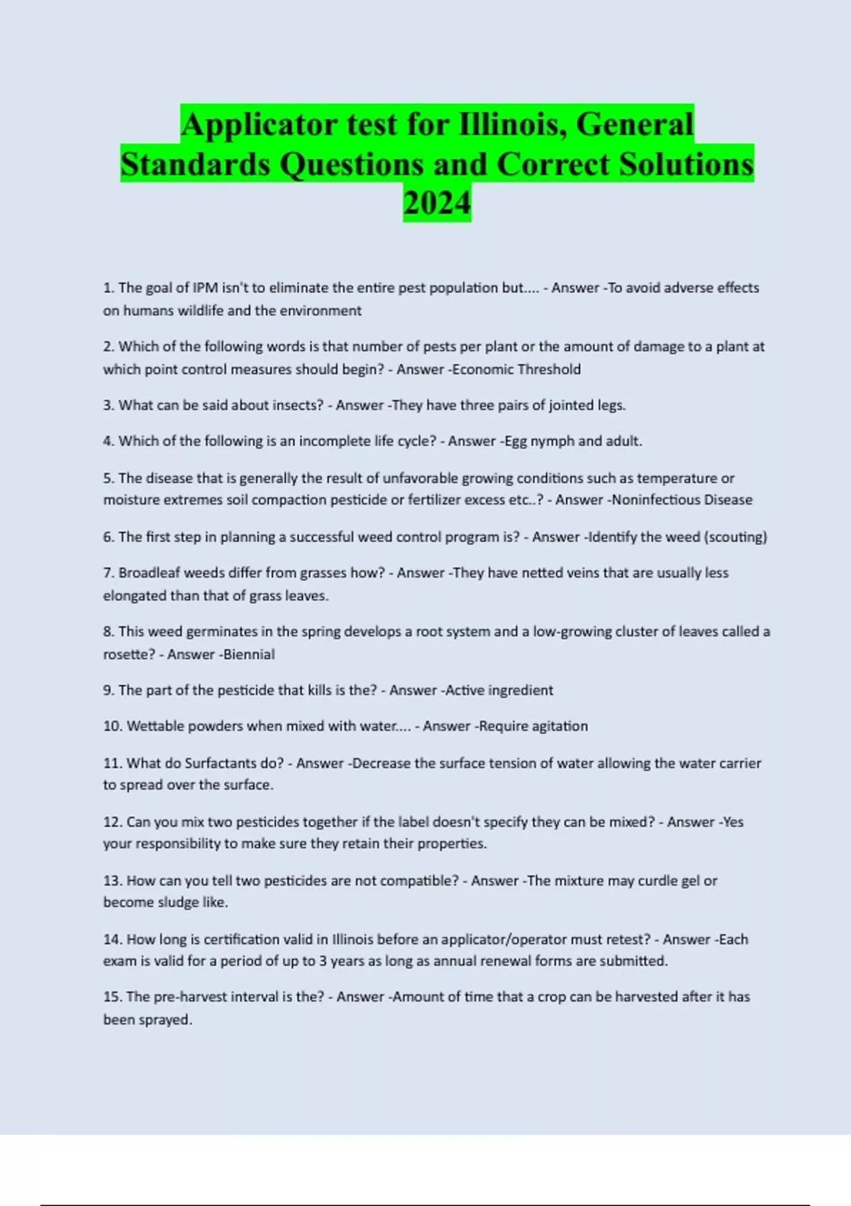 Bundle for Illinois Pesticide Applicator with Correct Solutions 2024 | 2025