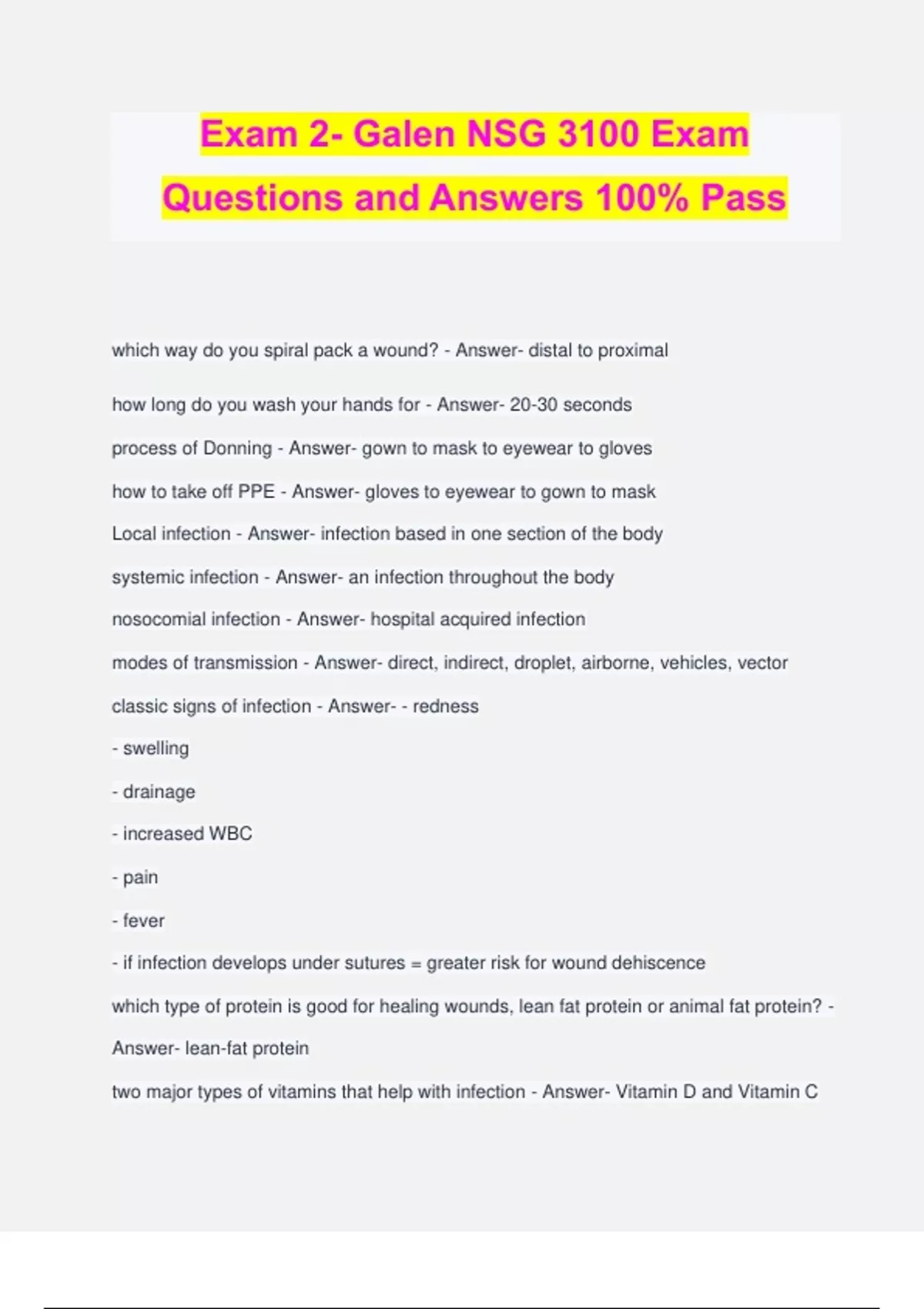 Galen NSG 3100 Bundled Exams Questions and Answers 100% Verified and Updated | Graded A
