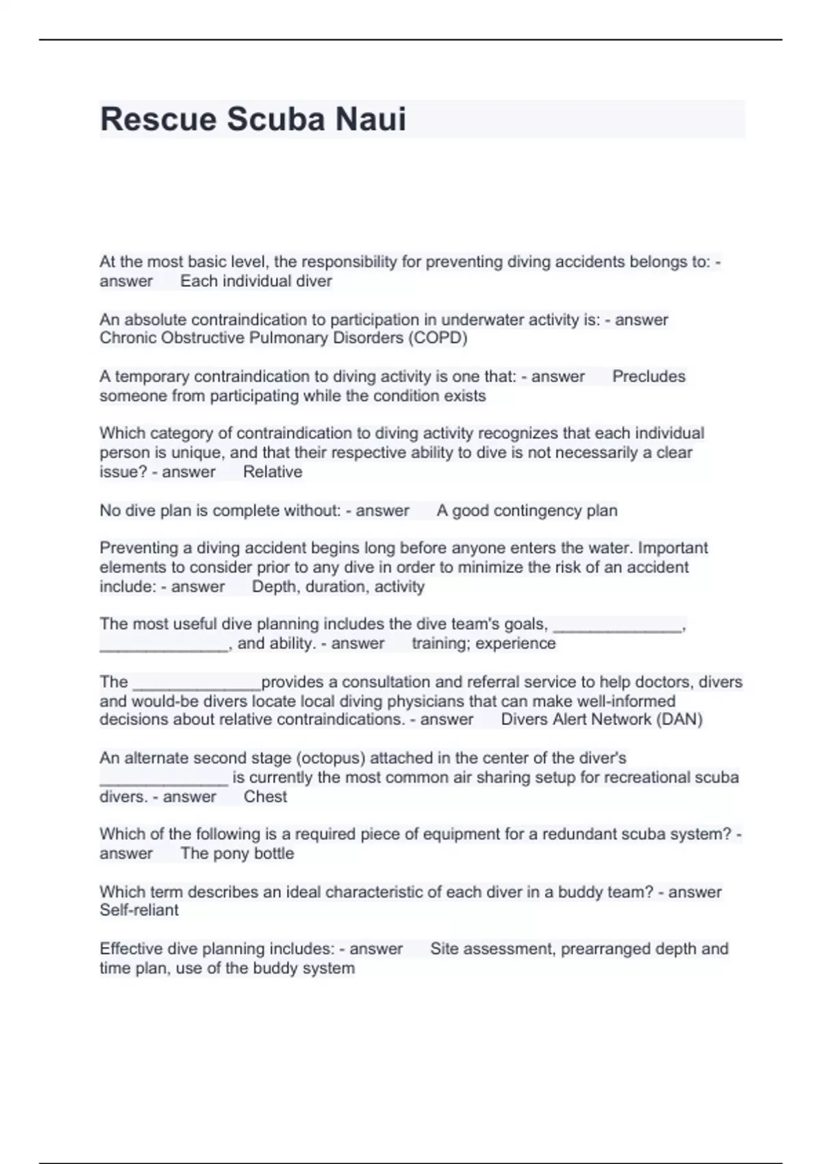 Exam (elaborations) Advanced Scuba Chapter Quizzes (NAUI)Questions and Answers Graded A+ Exam (elaborations) Dive Master NAUI Questions with Accurate Answers Exam (elaborations) NAUI Advanced Scuba Diver Questions with solutions 2024 Exam (elaborations) NAUI Advanced Questions with correct Answers 2024 Exam (elaborations) NAUI Chapter 1 Qu