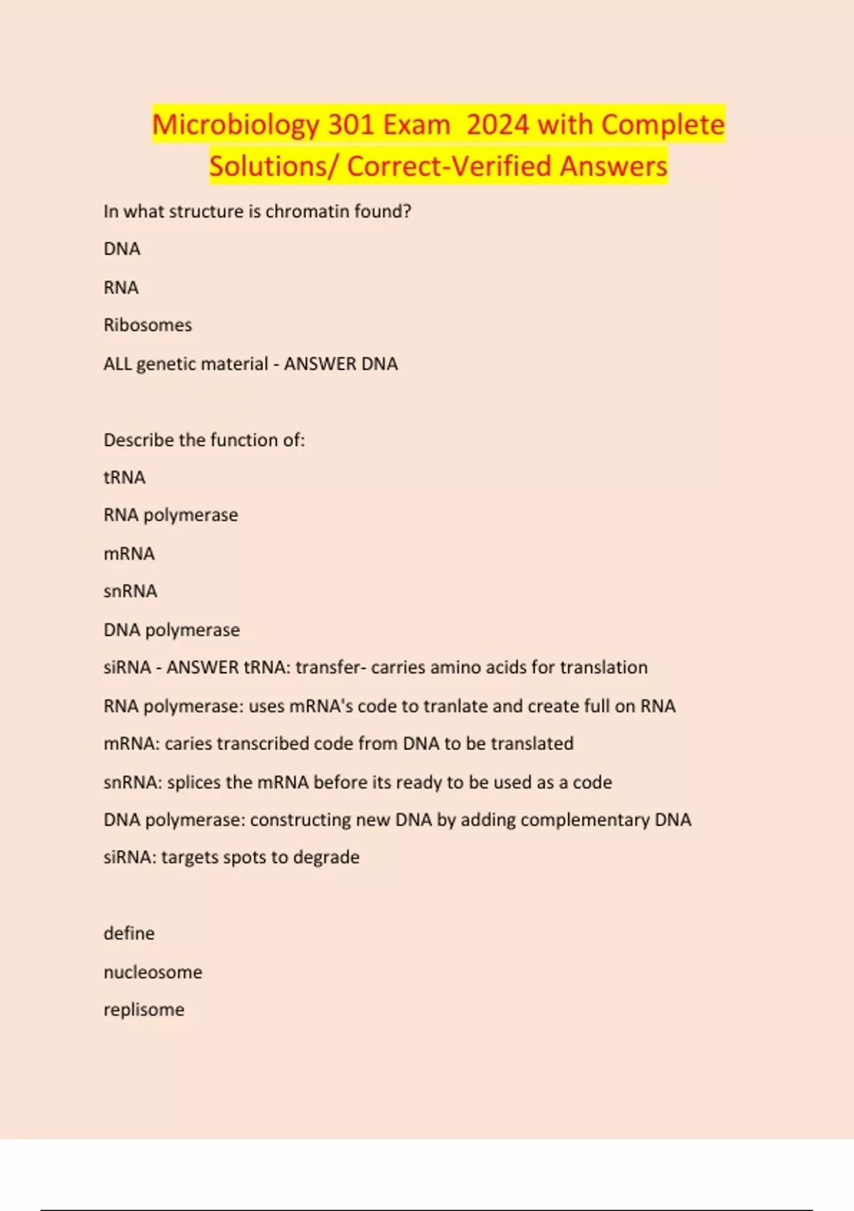Microbiology 301 EXAMS BUNDLE with Complete Solutions/ Correct-Verified Answers