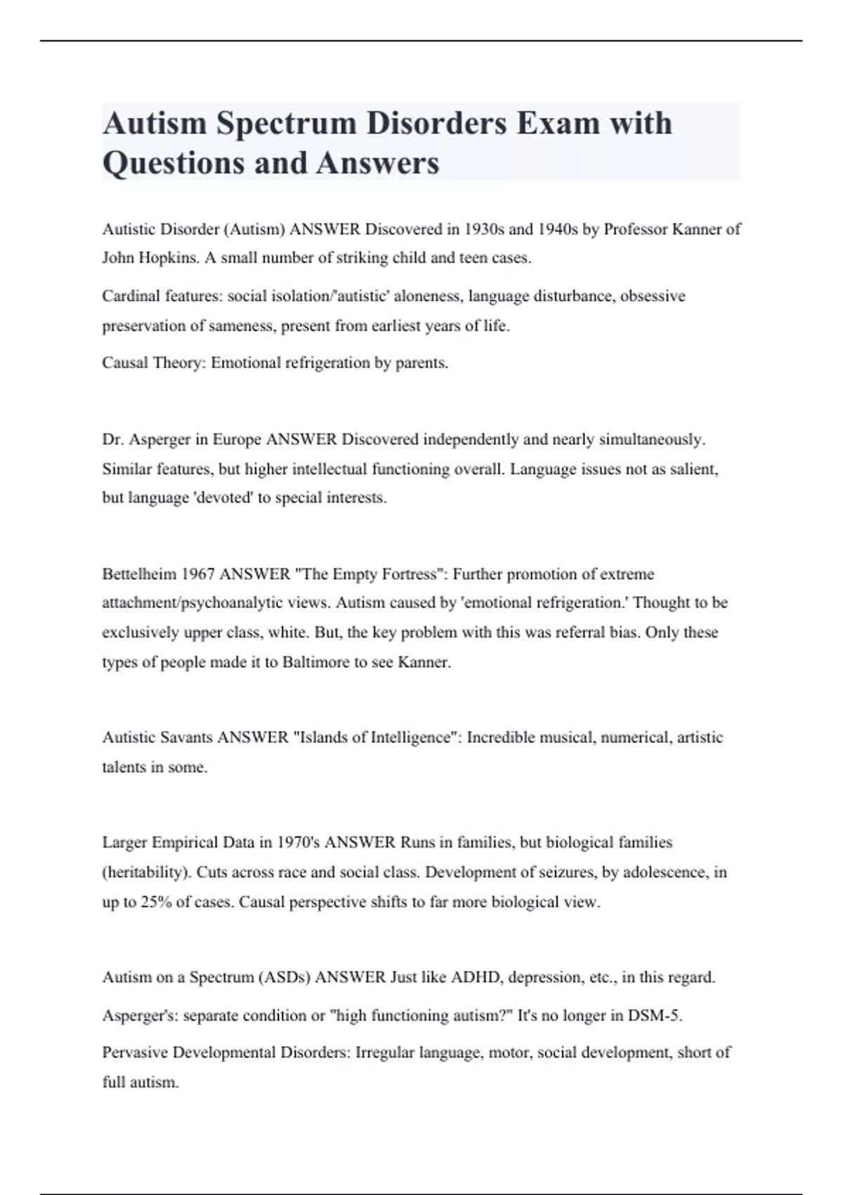 Package deal for Autism Spectrum Disorder Exam with Latest Questions and Answers