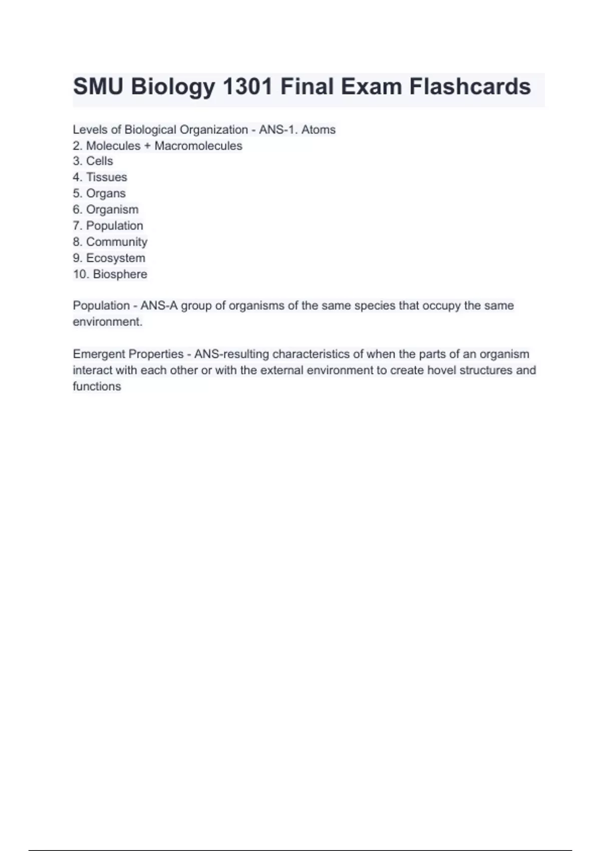 SMU Biology 1301 Final Exam Flashcards.