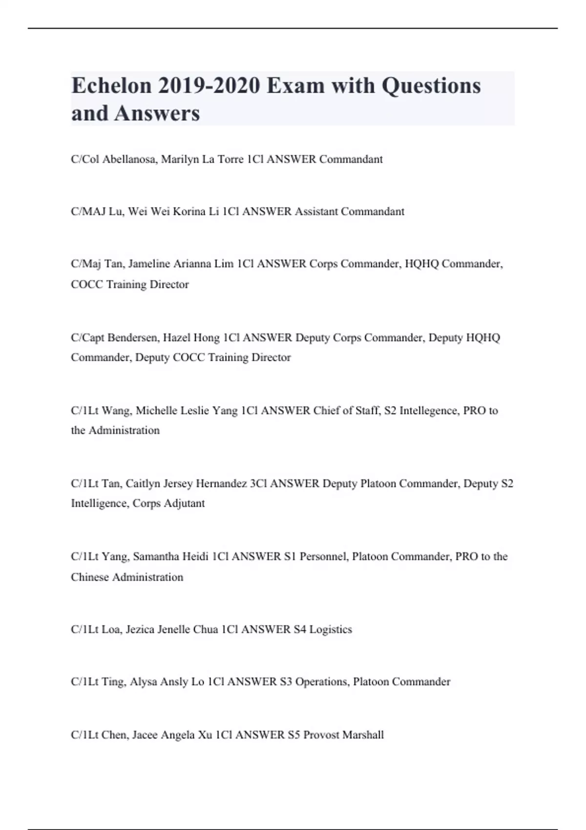 Echelon Quiz with Questions and Answers Echelon-Prevention of Medical Errors Exam with Questions and Answers 1.2 Row Reduction and Echelon Forms Exam with Questions and Answers Echelon Stroke post-test with Questions and Answers Echelons of Support Navy Exam with Questions and Answers Echelon Exam with Questions and Answers
