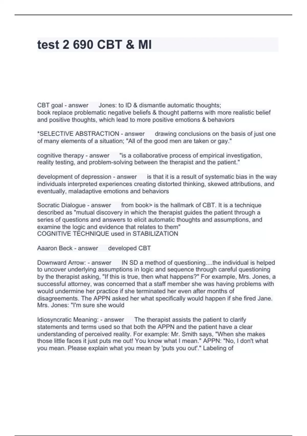 Exam (elaborations) 560. Corey - CBT Quiz Bank Questions and Answers 2024 Exam (elaborations) Basic CBT principles Questions and Answers 2024 Exam (elaborations) CBT Basic Principles of Cognitive-Behavior Therapy Questions and Answers 100% correct 2024 Exam (elaborations) CBT evaluation Questions and Answers 2024 Exam (elaborations) CBT qu