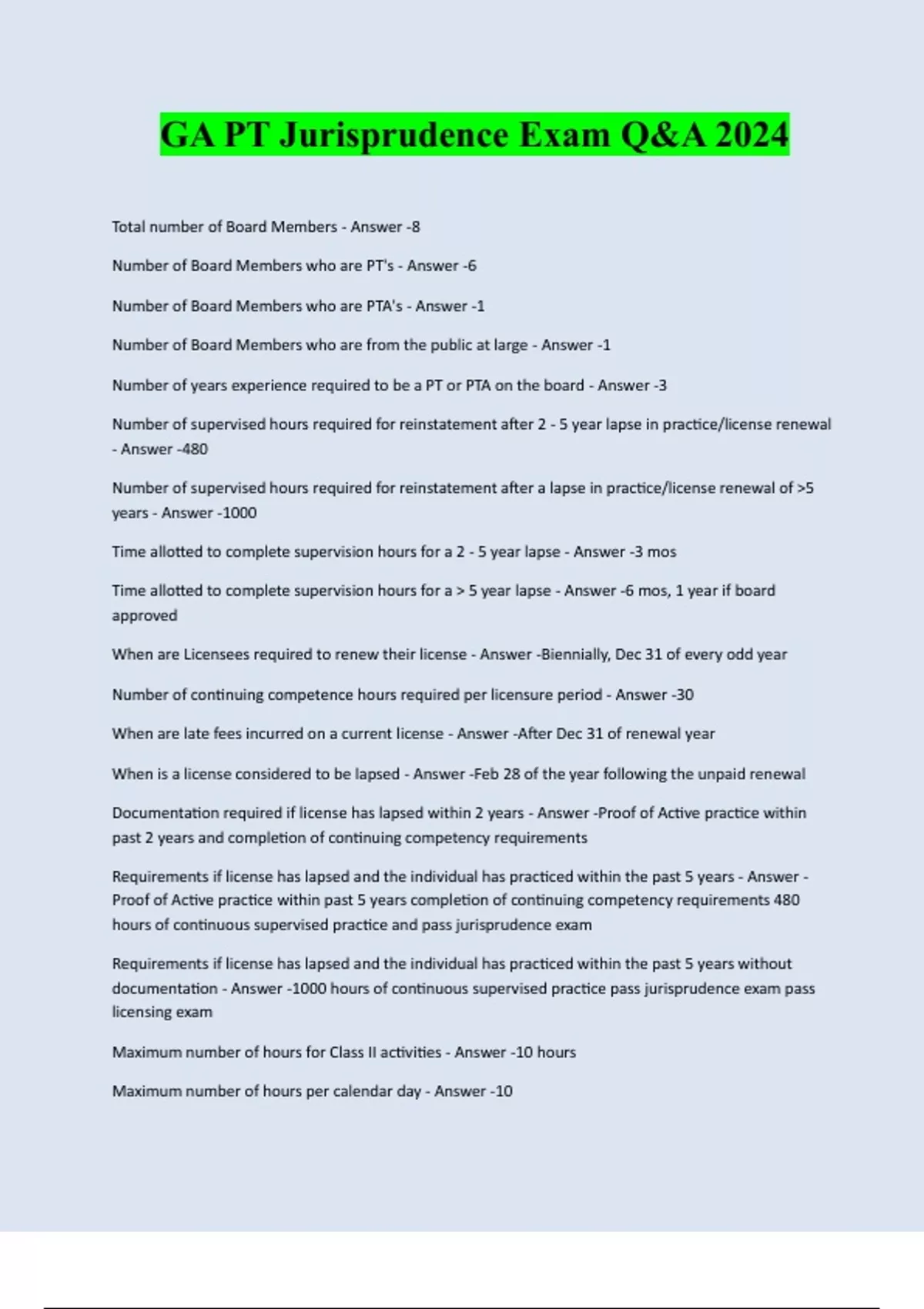 Bundle for PT Jurisprudence with Verified Solutions 2024 | 2025. Actual testsm Florida PT, California PT, Edsyn PT, AZ PT, Ohio PT, GA PT, study guides