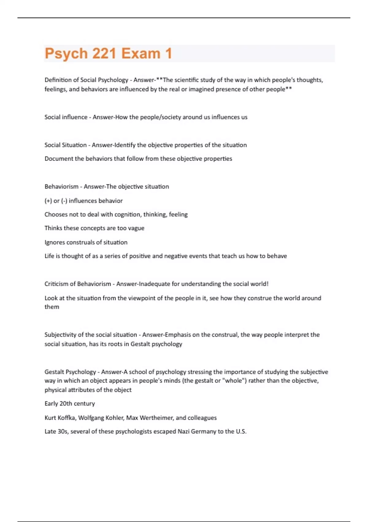 Psych 221 Exam 1 Questions & Answers Correctly Answered.