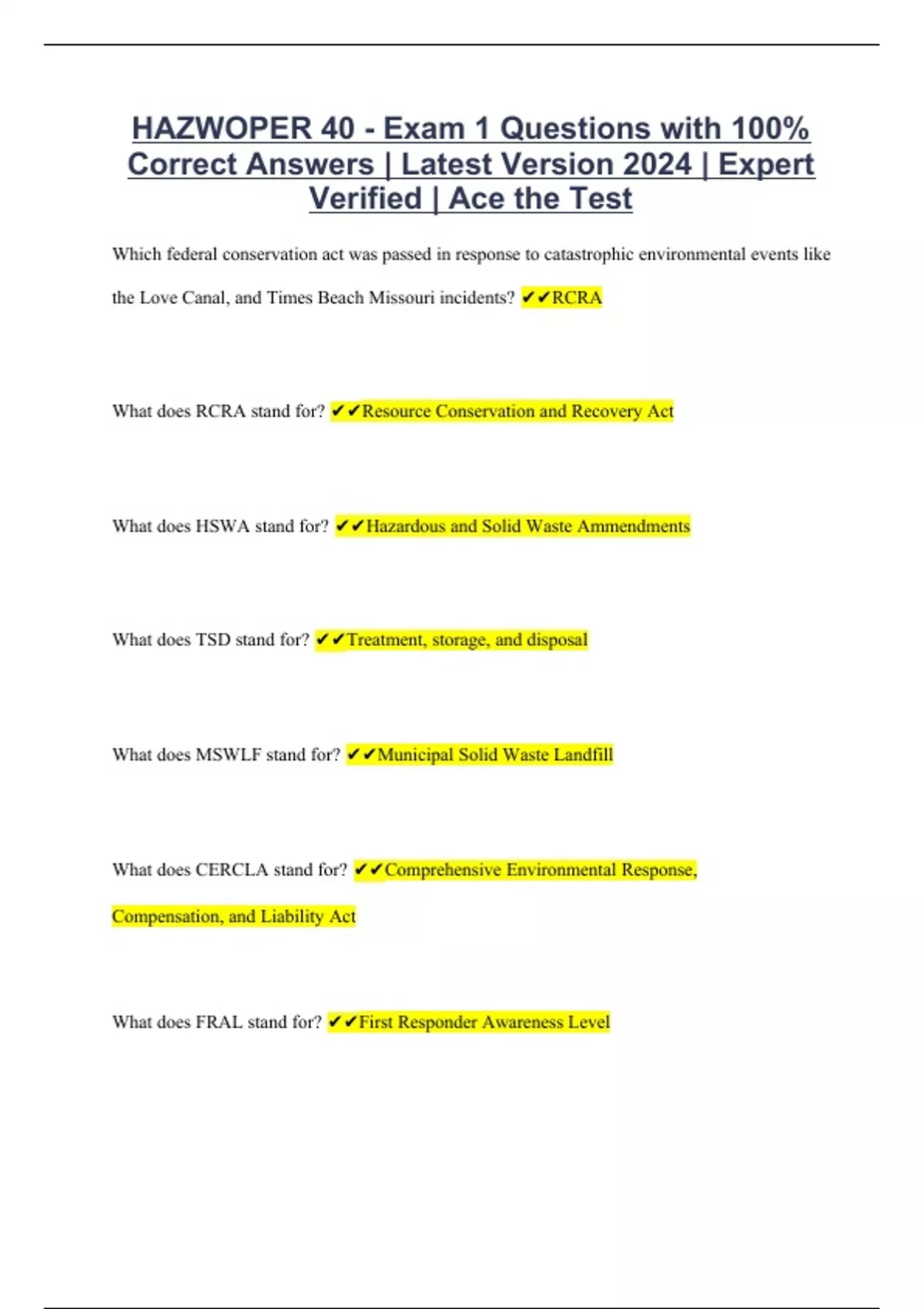 HAZWOPER 40 - Exam 1 Questions with 100% Correct Answers | Latest Version 2024 | Expert Verified | Ace the Test