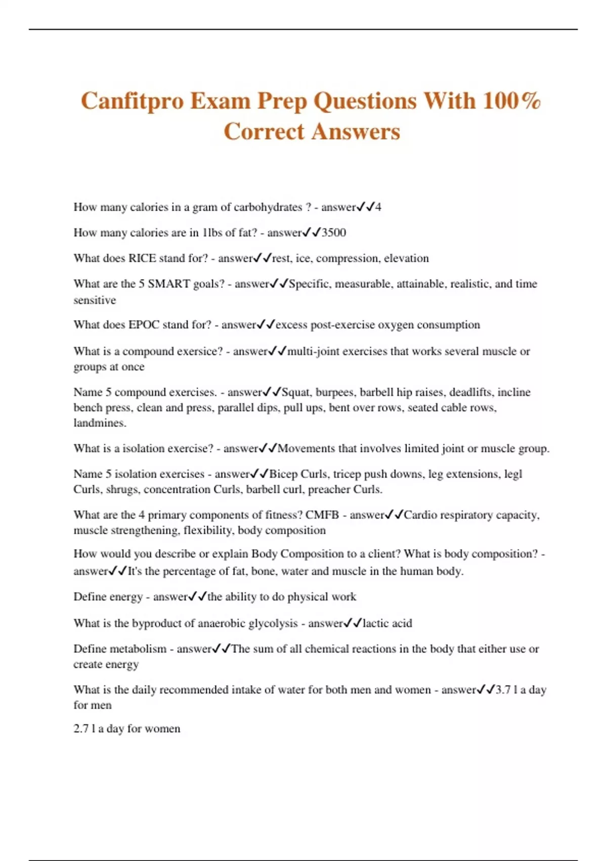 Canfitpro Exam Package Deal Questions And Verified Answers.