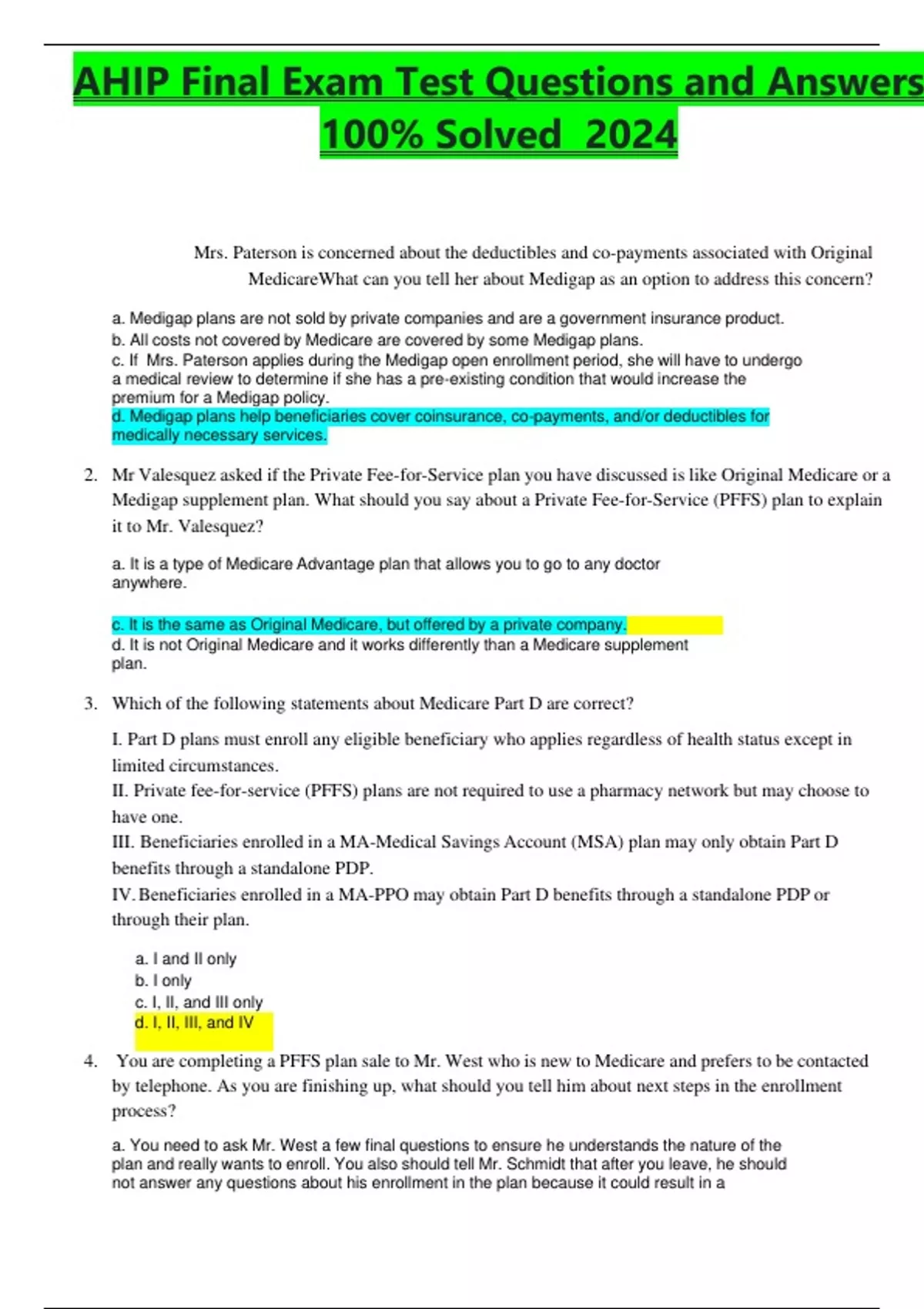 AHIP TRAINING Medicare Fraud, Waste, and Abuse Training Questions and Answers 100% Solved 2 Exam (elaborations) AHIP FWA 2024/25 Questions and Answers 100% Solved 3 Exam (elaborations) AHIP FWA Exam Questions and Answers 100% Solved 4 Exam (elaborations) AHIP NONDISCRIMINATION TRAINING 2024/25 QUESTIONS AND ANSWERS 100% SOLVED 5 Exam (elaborati
