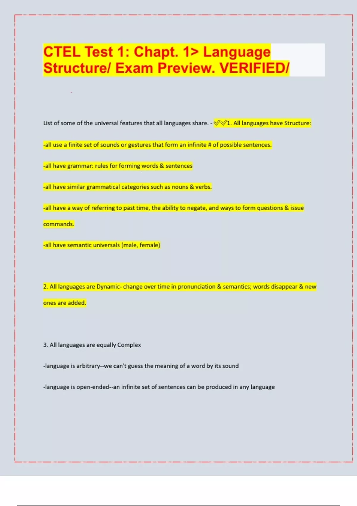 CTEL Test 1: Chapt. 1> Language Structure/ Exam Preview. VERIFIED/| latest update 2024/25|