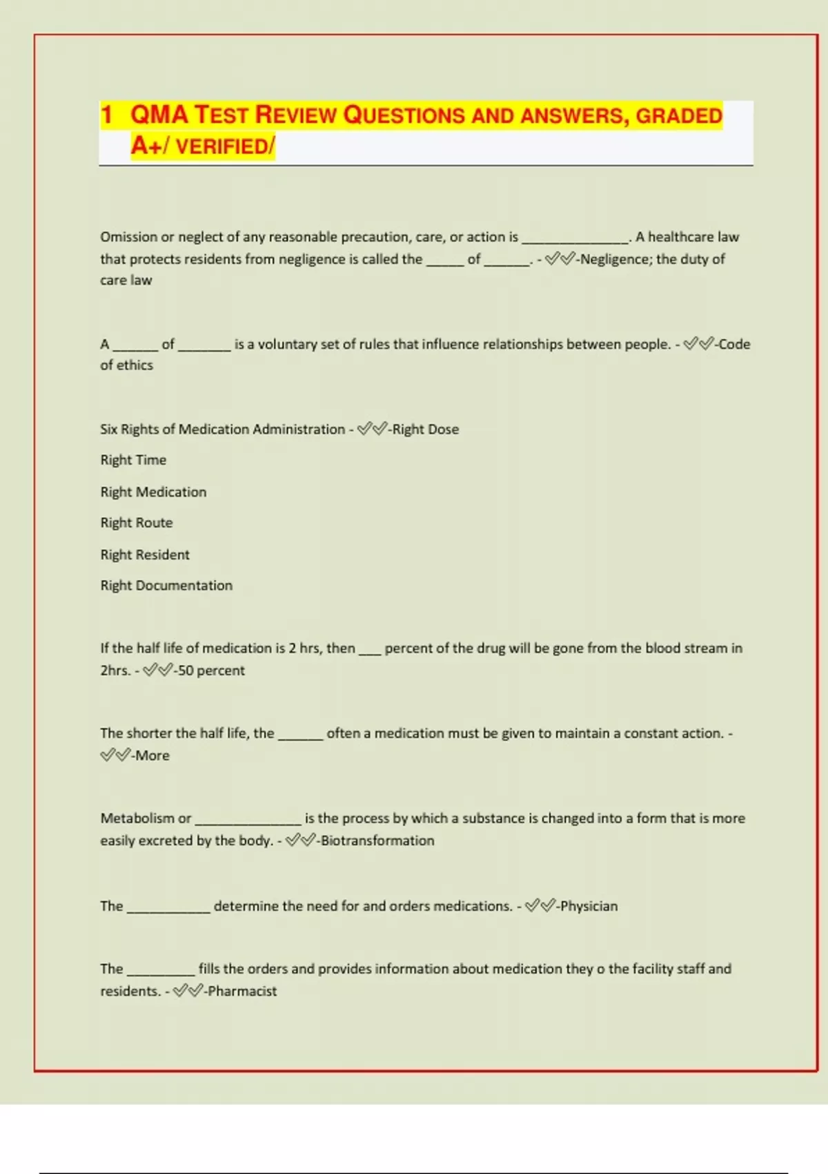 QMA TEST REVIEW QUESTIONS AND ANSWERS, GRADED A+/ VERIFIED/
