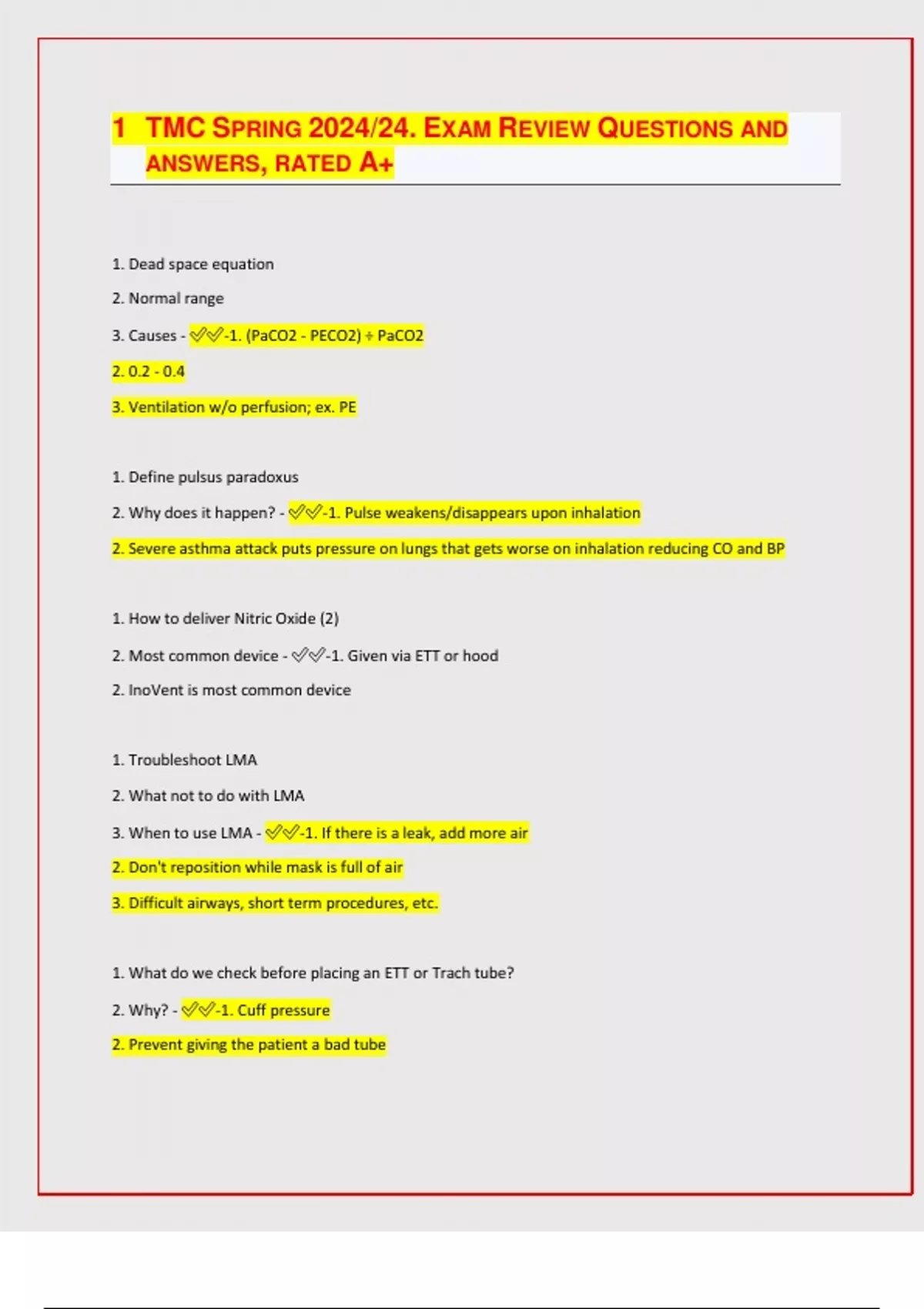TMC SPRING 2024/24. EXAM REVIEW QUESTIONS AND ANSWERS, RATED A+| latest update 2024/25|
