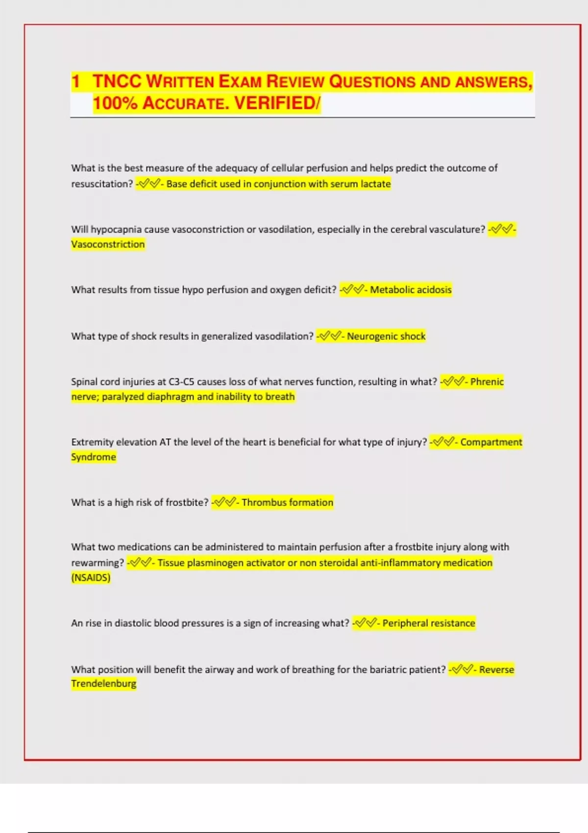 TNCC EXAM REVIEW QUESTIONS AND ANSWERS, 100% ACCURATE, GRADED A+/ VERIFIED/| latest update 2024/25|