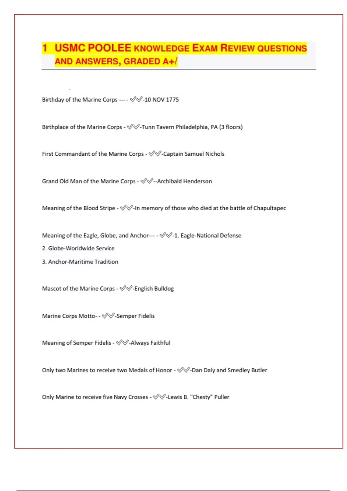 USMC POOLEE KNOWLEDGE EXAM REVIEW QUESTIONS AND ANSWERS, GRADED A+/