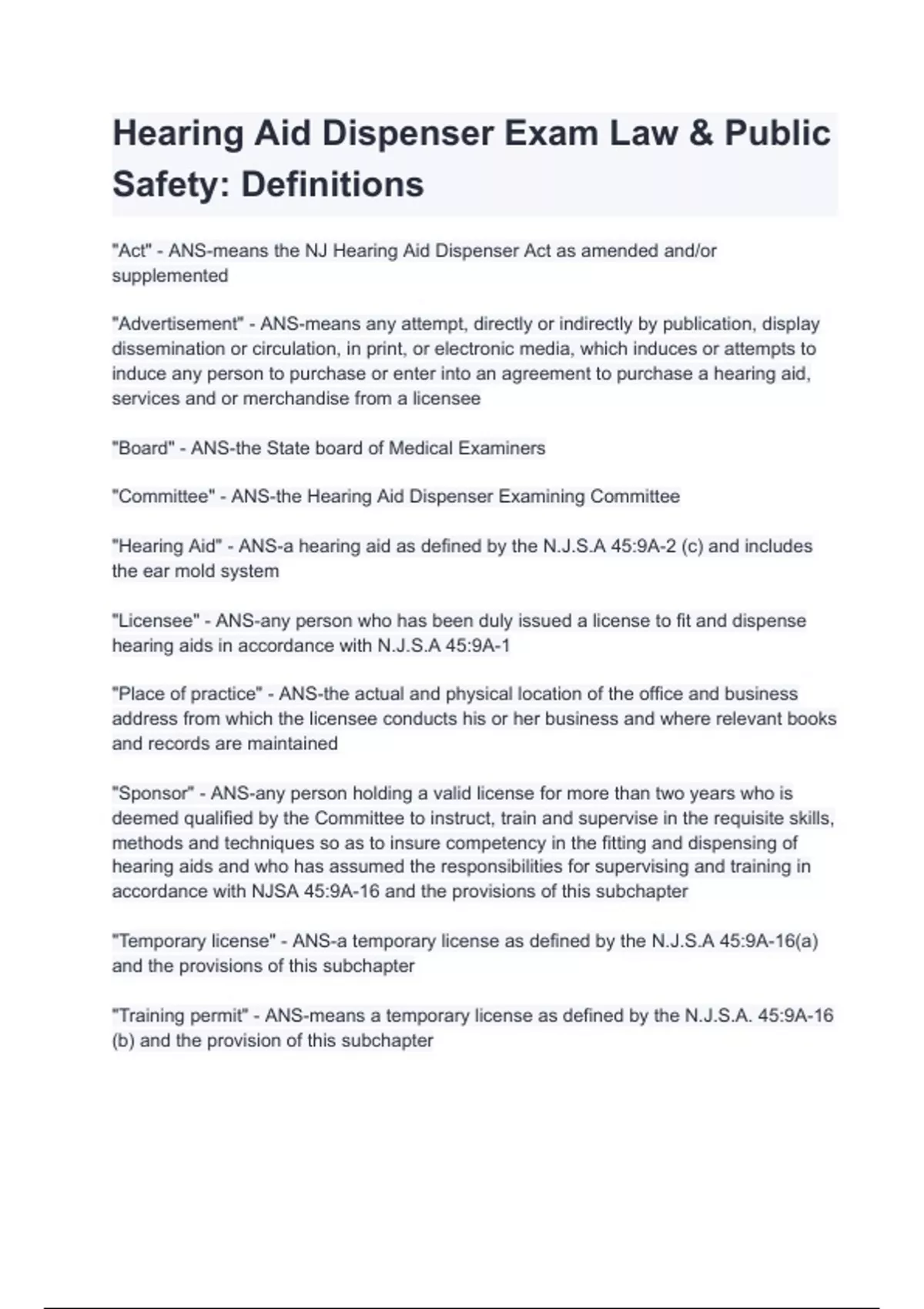 Hearing Aid Dispenser Exam Law & Public Safety_ Definitions