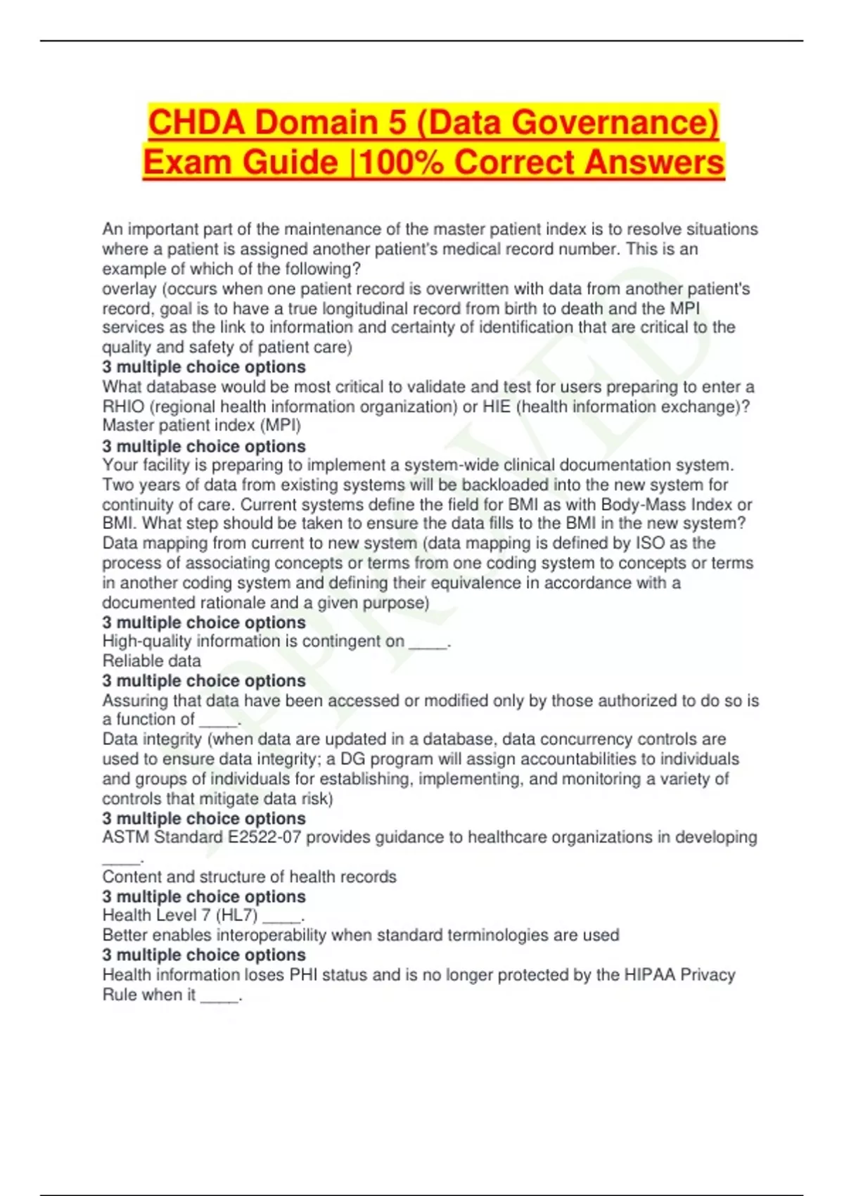 Compiled CHDA Test Bank |100% Correct Answers| [Verified]