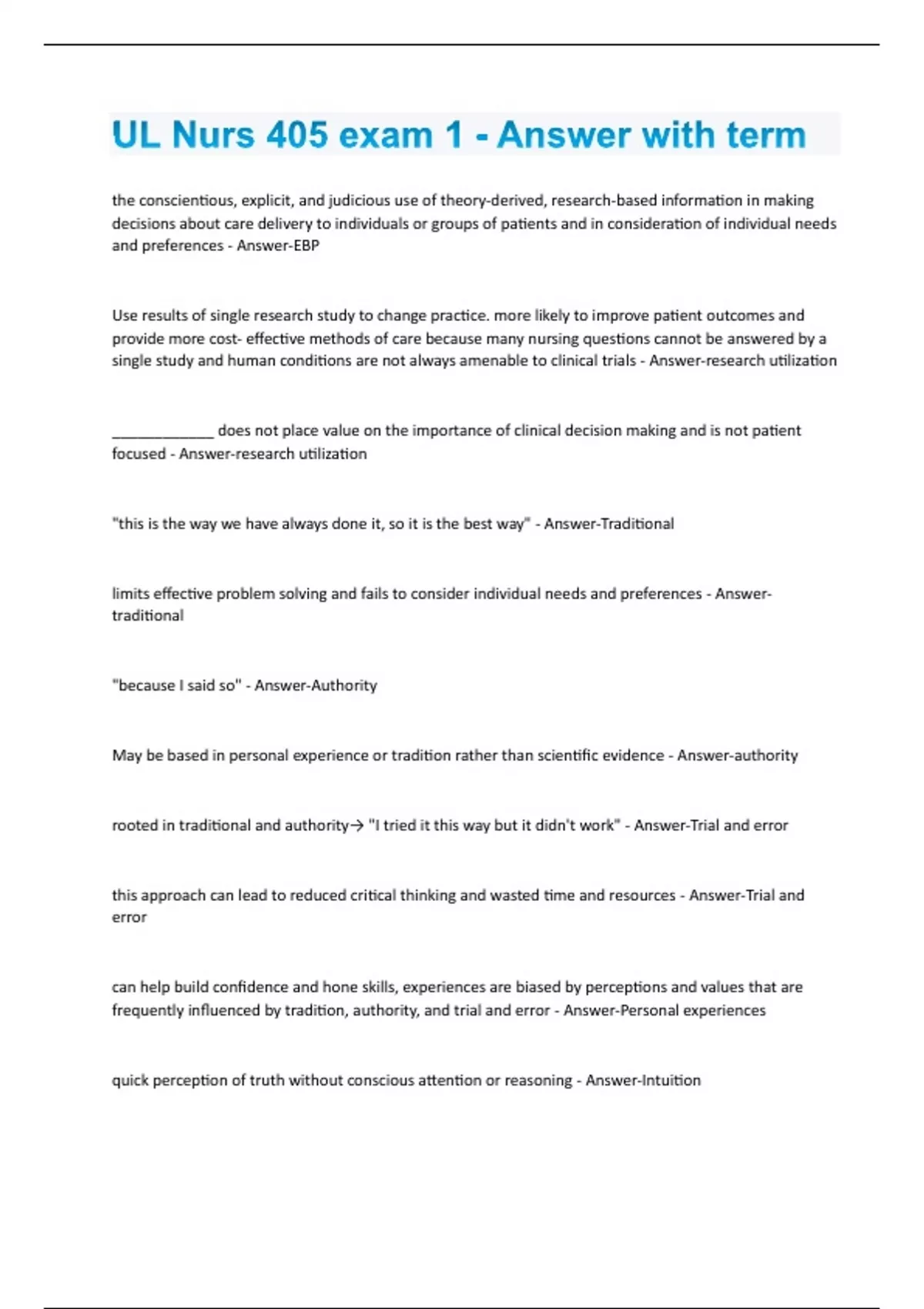 UL Nurs 405 exam 1 - Answer with term Questions And Answers